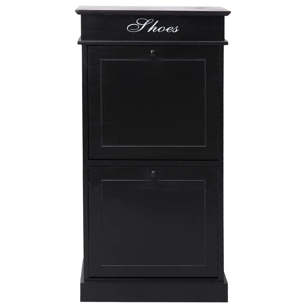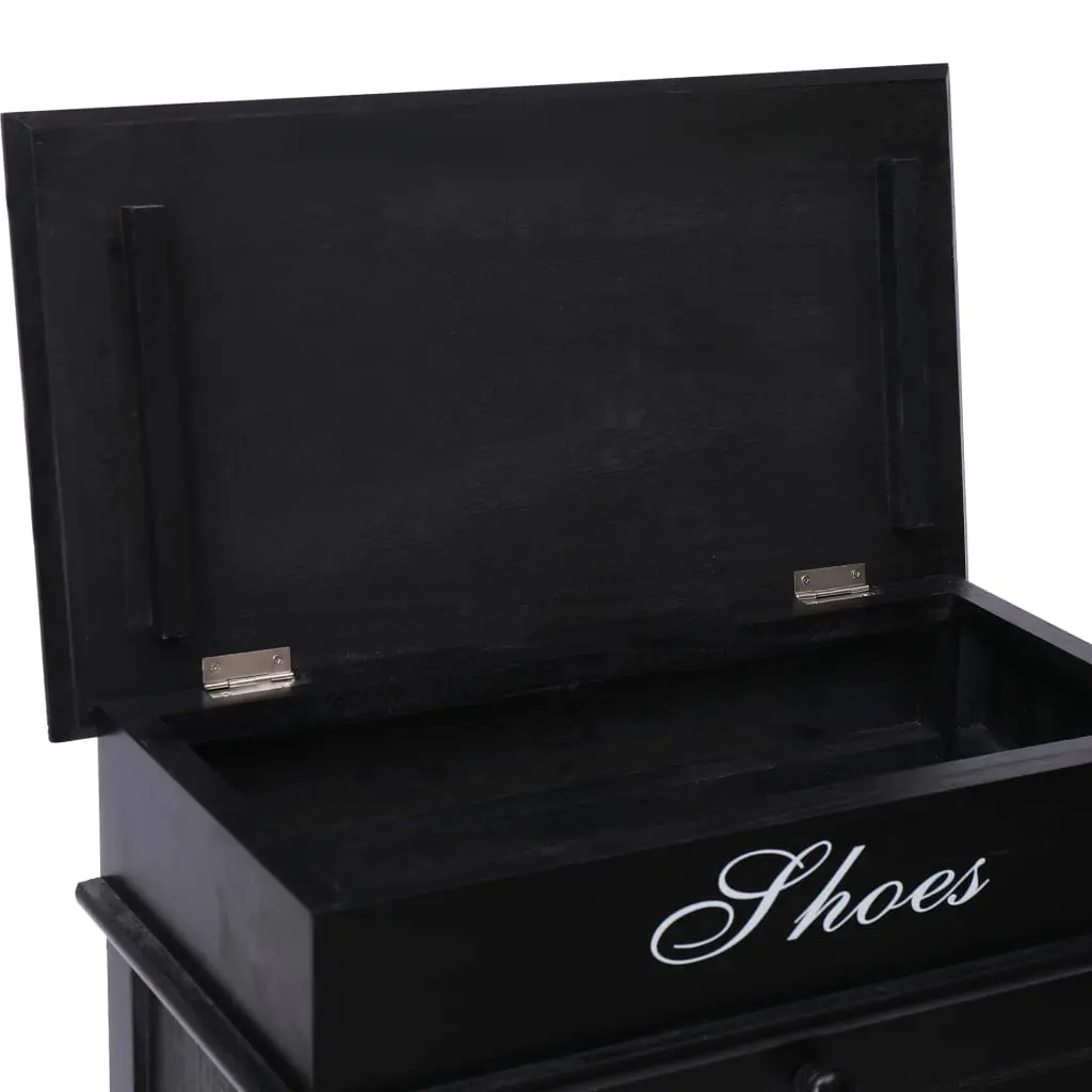 Our timeless wooden shoe cabinet presents an ideal shoe storage solution for your bedroom or hallway. You will no longer be annoyed by shoes cluttering your floor. The 2 large tilting compartments have cross bars to keep things well-organised, enabling the shoe rack to store the shoes in such a pleasurable way that you can conveniently see and remove them. Up to 10 pairs of shoes can be stored dust-free. Additionally, the cabinet top can be opened, and you can use the upper compartment to store shoe accessories such as shoelaces, shoe-pads, as well as other small belongings. Made of paulownia wood and MDF, our shoe cabinet is easy to assemble.