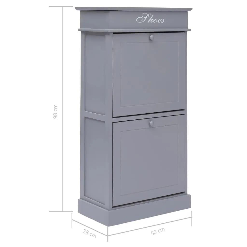 Our timeless wooden shoe cabinet presents an ideal shoe storage solution for your bedroom or hallway. You will no longer be annoyed by shoes cluttering your floor. The 2 large tilting compartments have cross bars to keep things well-organised, enabling the shoe rack to store the shoes in such a pleasurable way that you can conveniently see and remove them. Up to 10 pairs of shoes can be stored dust-free. Additionally, the cabinet top can be opened, and you can use the upper compartment to store shoe accessories such as shoelaces, shoe-pads, as well as other small belongings. Made of paulownia wood and MDF, our shoe cabinet is easy to assemble.