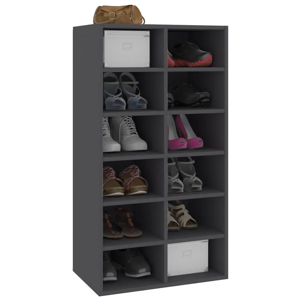 Keep your shoes organised and always at hand with our shoe rack! This rack is made of quality board, which is durable and sturdy for long service life. It is in a simple design, which can fit easily into your existing living space. With ample space of 12 compartments, this rack can accommodate many shoes, storage boxes, hobby utensils, collectibles and more. Wall mounting accessories and a wall anchor to prevent the rack from tipping over are included in delivery. It is easy to clean with damp cloth. The rack is easy to assemble.