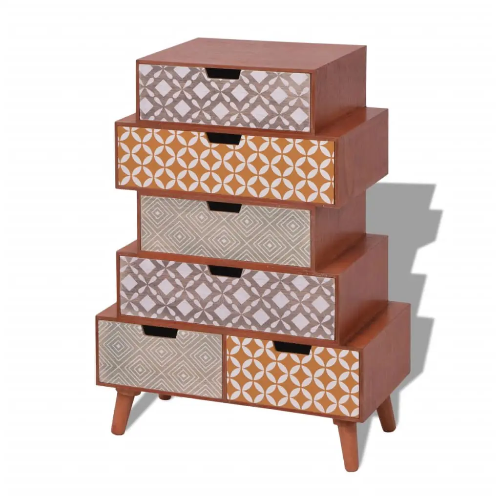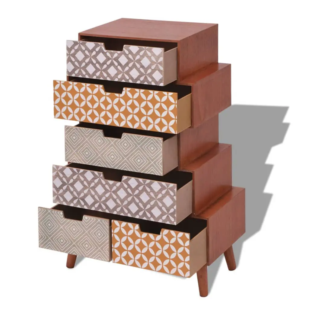 This side cabinet with 6 drawers has a retro design with elegant decorative patterns. The sideboard will make a practical as well as highly decorative addition to your bedroom, living area or lounge room. The rectangular top can be used to place a telephone or display decorative objects such as photo frames or potted plants. The six drawers provide ample space for keeping all kinds of smaller items organised and within reach. Thanks to the high-quality MDF material and the strong pinewood legs, this commode is very sturdy and durable. Assembly is really easy.