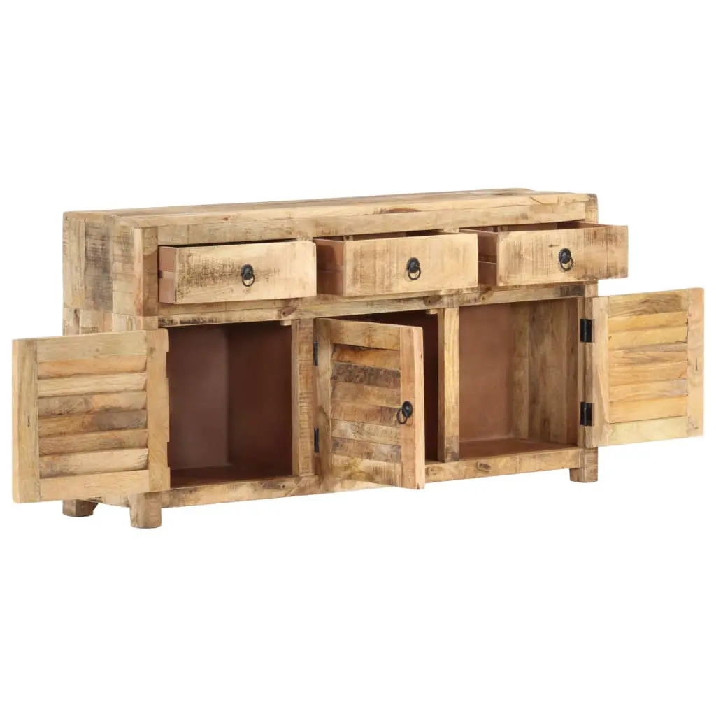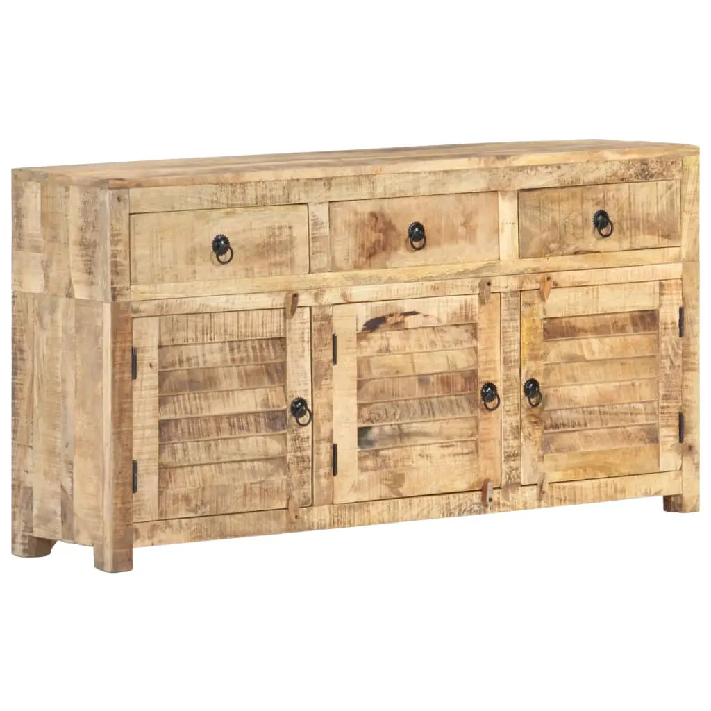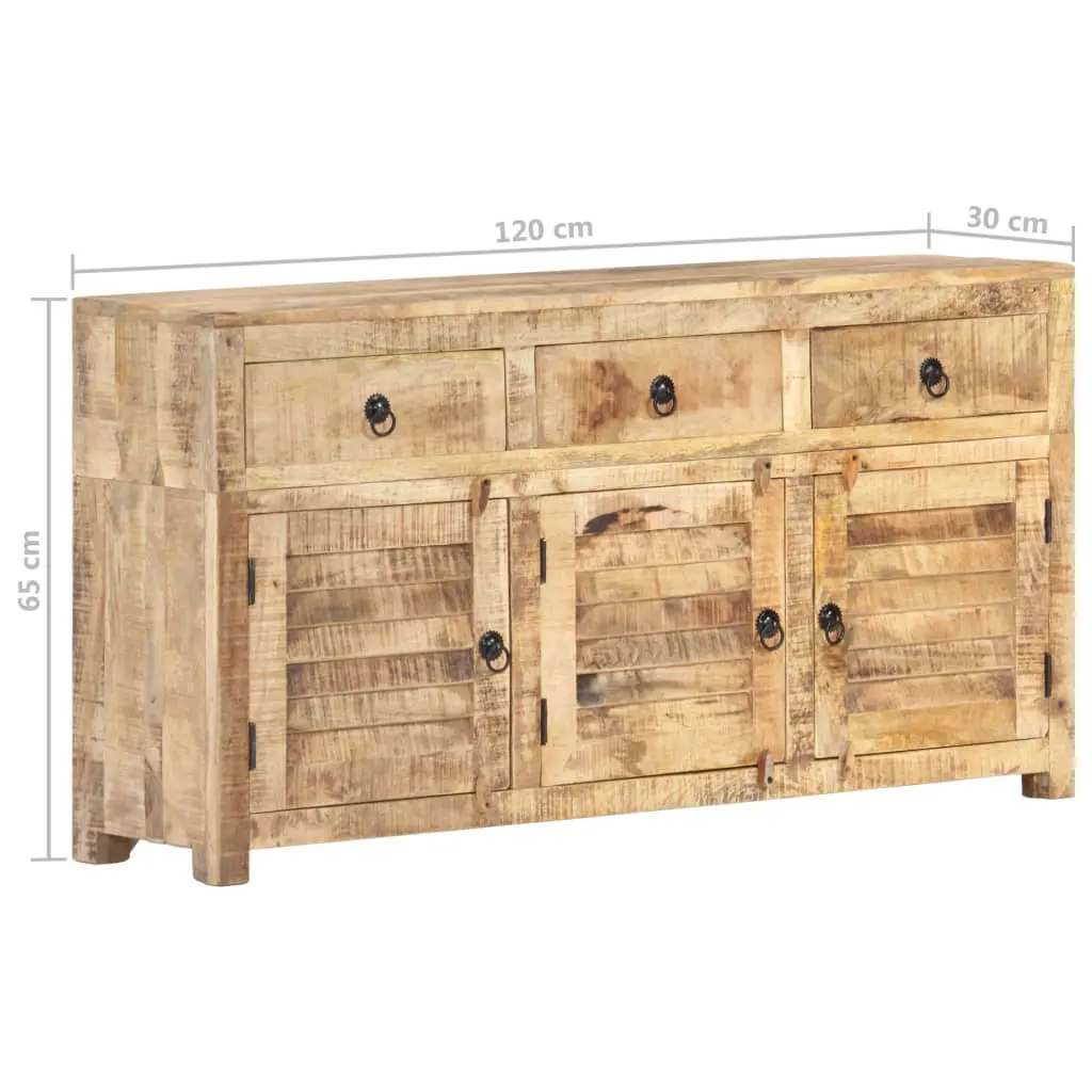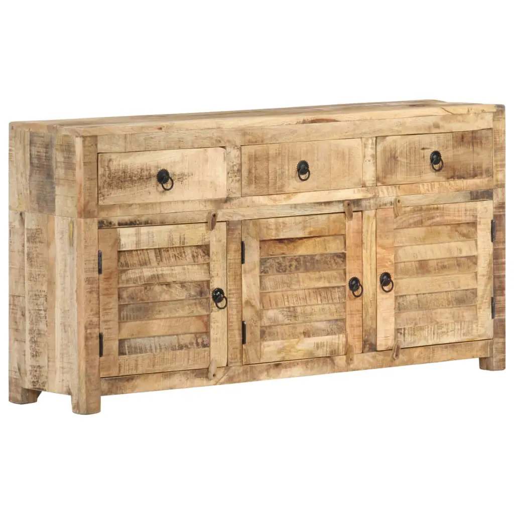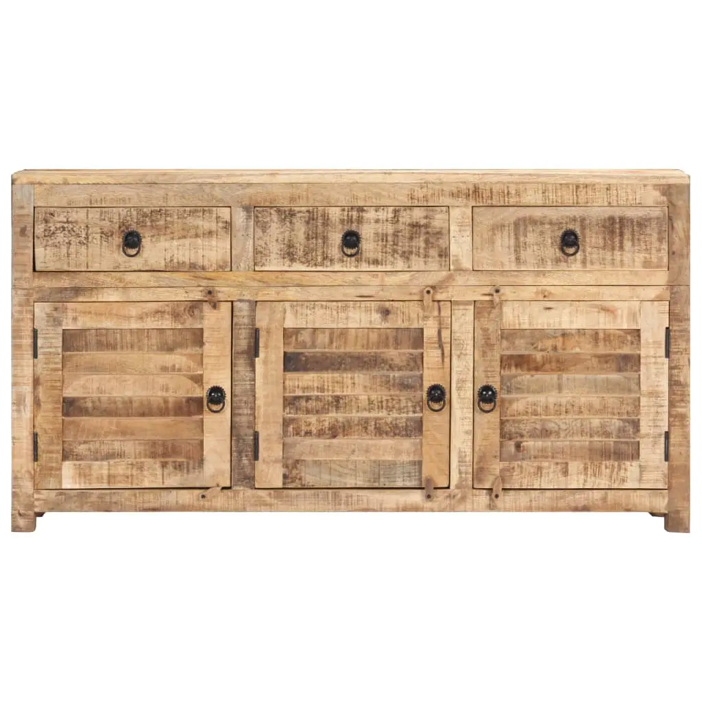This wooden sideboard will be a perfect choice if you are looking to add a touch of rustic charm to your home decor. The storage cabinet is handmade out of solid mango wood which is sturdy and stable, and the craftsmanship adds to its spectacular retro style. The sturdy top is ideal for displaying photo frames, vases, fruit baskets, or other decorative items. The 3 drawers and 3 doors provide ample storage space, which will keep your items dust free and clutter out of sight. The side cabinet is also easy to assemble. Important note: The colour may vary from piece to piece, making each of our sideboards unique; the delivery is random.