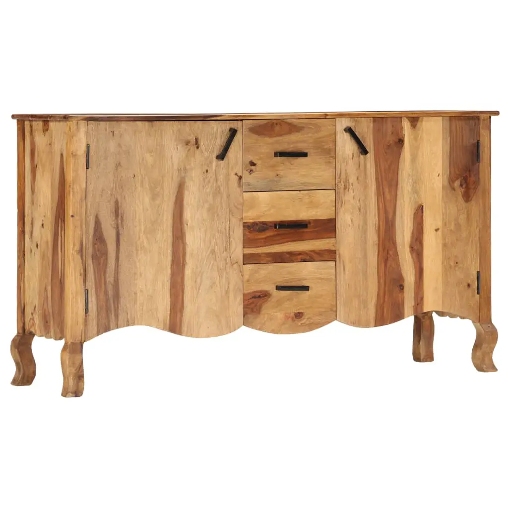 This sideboard radiates a distinctive charm that will add an eye-catching piece to your home decor. The cabinet is made of solid Sheesham wood, which is also known as rosewood or Palisander, is a tropical hardwood that is famous for its natural grains and smooth texture. Additionally, it doesn’t warp or split, and has natural decay resistance. As a consequence, this beautifully-designed sideboard is exceedingly stable, durable and attention-grabbing. The perfect craftsmanship guarantees that every step of the process is carried out with the greatest care, be it polishing or lacquering. Our wooden cabinet is fully handmade and the aesthetically-appealing wood grains make every piece distinctive and slightly different from each other. This sideboard features 3 drawers and 2 doors, providing ample space for storing your multimedia appliances, books, as well as various other items. This item is already assembled; no assembly is required. Important note: The wood grains vary from piece to piece, making each piece unique; the delivery is random.