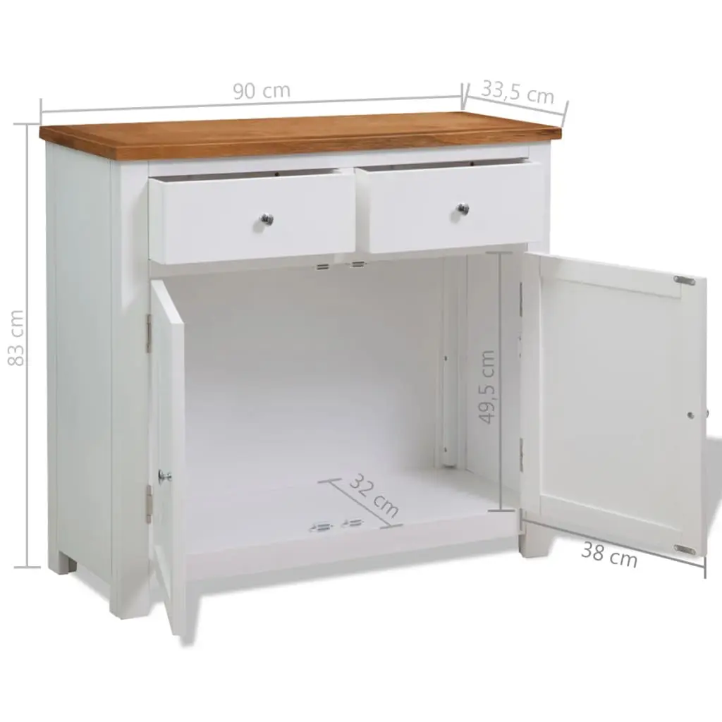 - Material: Oak (top) + acacia wood with a white paint finish