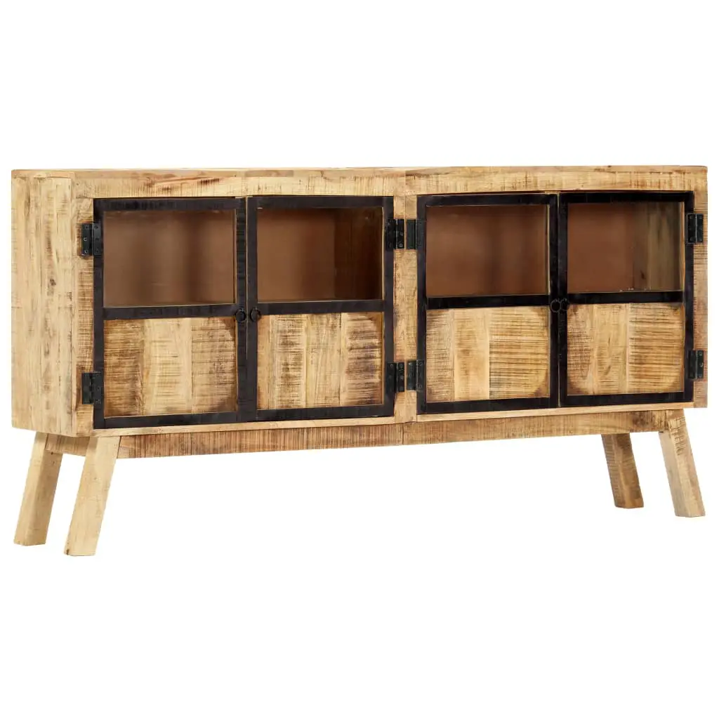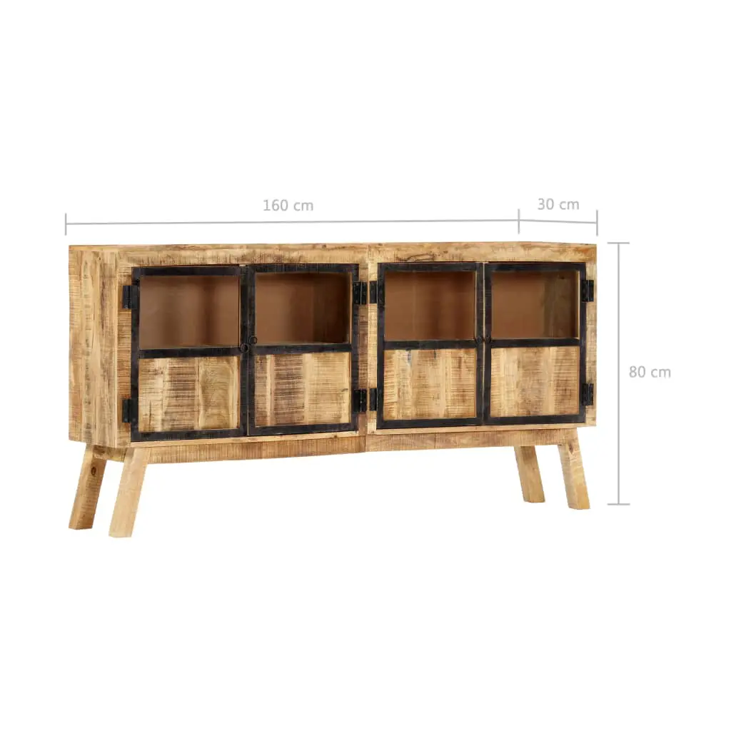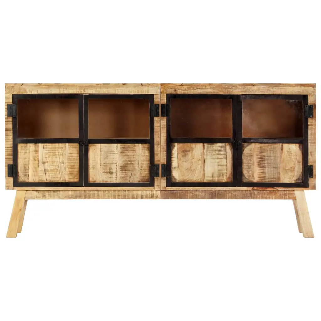 This wooden sideboard will make a timeless addition to your interior. Made of solid rough mango wood, making the cabinet exceedingly stable and durable. This wooden sideboard with 2 doors provides ample space for keeping your magazines, books, decorations, as well as other small items within reach. Additionally, the wooden frame design adds an industrial look. Important note: The rough mango wood shows natural grains, making each of the sideboards unique and slightly different from the next; the delivery is random.