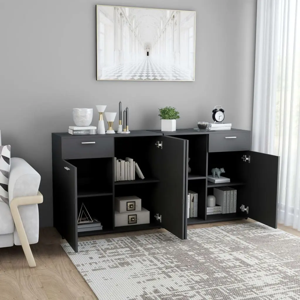 This sideboard, featuring a minimalist design, makes a practical as well a beautiful decorative addition to your home. This sideboard with 4 doors and 2 drawers provides ample storage space for books, multimedia appliances and other items. The sturdy tabletop is ideal for displaying decorative objects, photo frames, or potted plants. The premium board material makes this sideboard long-lasting. The drawer cabinet is easy to clean with a damp cloth. This sideboard is also easy to assemble.