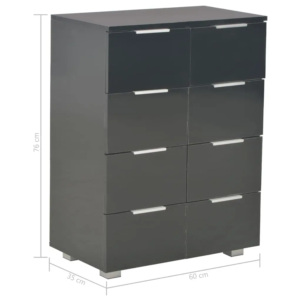 With its practical utility, the sideboard will become an ideal complement in your room. Made of chipboard with a high gloss finish, giving the drawer cabinet a refined look and making it exceedingly stable and durable. Additionally, equipped with 8 drawers, the sideboard provides ample storage space for your various items, making your room tidy and clean. This high gloss storage cabinet is easy to clean.