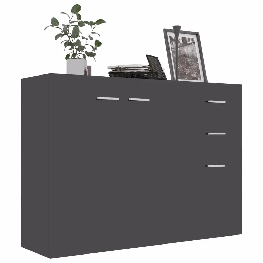 This sideboard, featuring a minimalist design, will make a practical as well as highly decorative addition to your home. With 2 doors and 3 drawers, the sideboard provides ample storage space for books, multimedia appliances and other items. The sturdy tabletop is ideal for displaying decorative objects, photo frames, or potted plants. Thanks to the premium board material, this sideboard is built to last. Additionally, the drawer cabinet is easy to clean with a damp cloth. This item is easy to assemble.