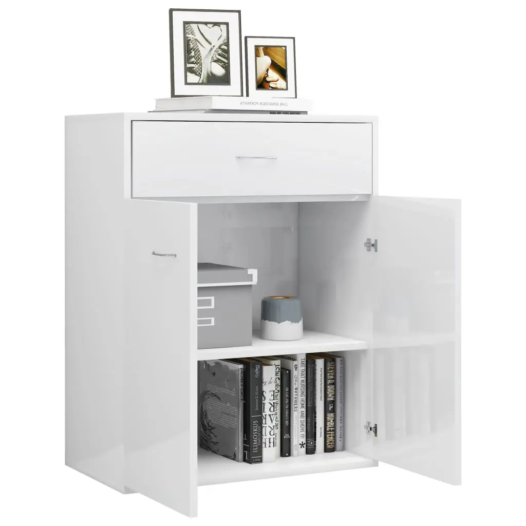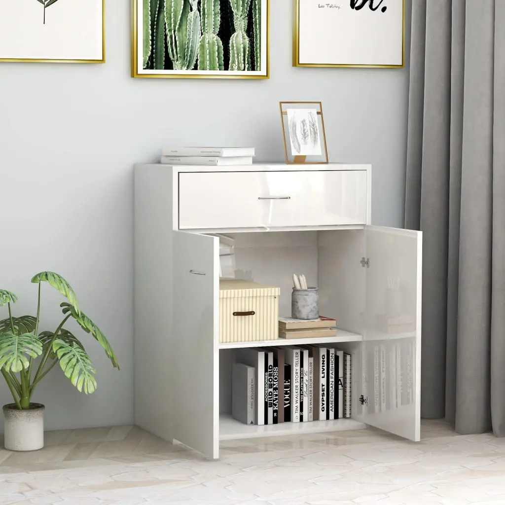 This sideboard, featuring a minimalist design, will make a practical as well as highly decorative addition to your home. With 2 doors and a drawer, the sideboard provides ample storage space for books, multimedia appliances and other items. The sturdy tabletop is ideal for displaying decorative objects, photo frames, or potted plants. It can also be used as a low board, side cabinet, etc. Thanks to the premium board material, this sideboard is built to last. The drawer cabinet is easy to clean with a damp cloth.