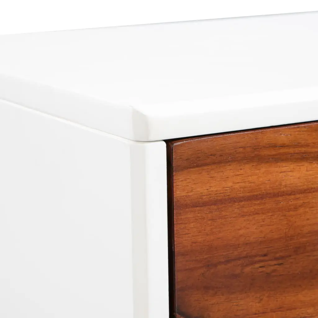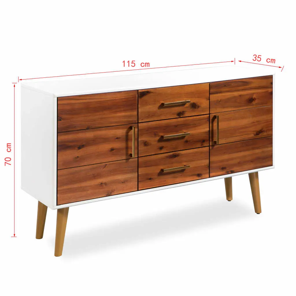 Our high-quality wooden sideboard has a stylish design and will make a great addition to your living room, dining room, hallway etc. Expertly crafted from solid acacia wood and high-quality MDF, the sideboard is very sturdy and durable. It has three drawers and two doors, which provide ample storage space for books, media carriers and other items. The drawers and cabinet doors have brass-look handles that add to the retro style while the top is ideal for displaying decorative objects, photo frames, or potted plants. Assembly is easy.