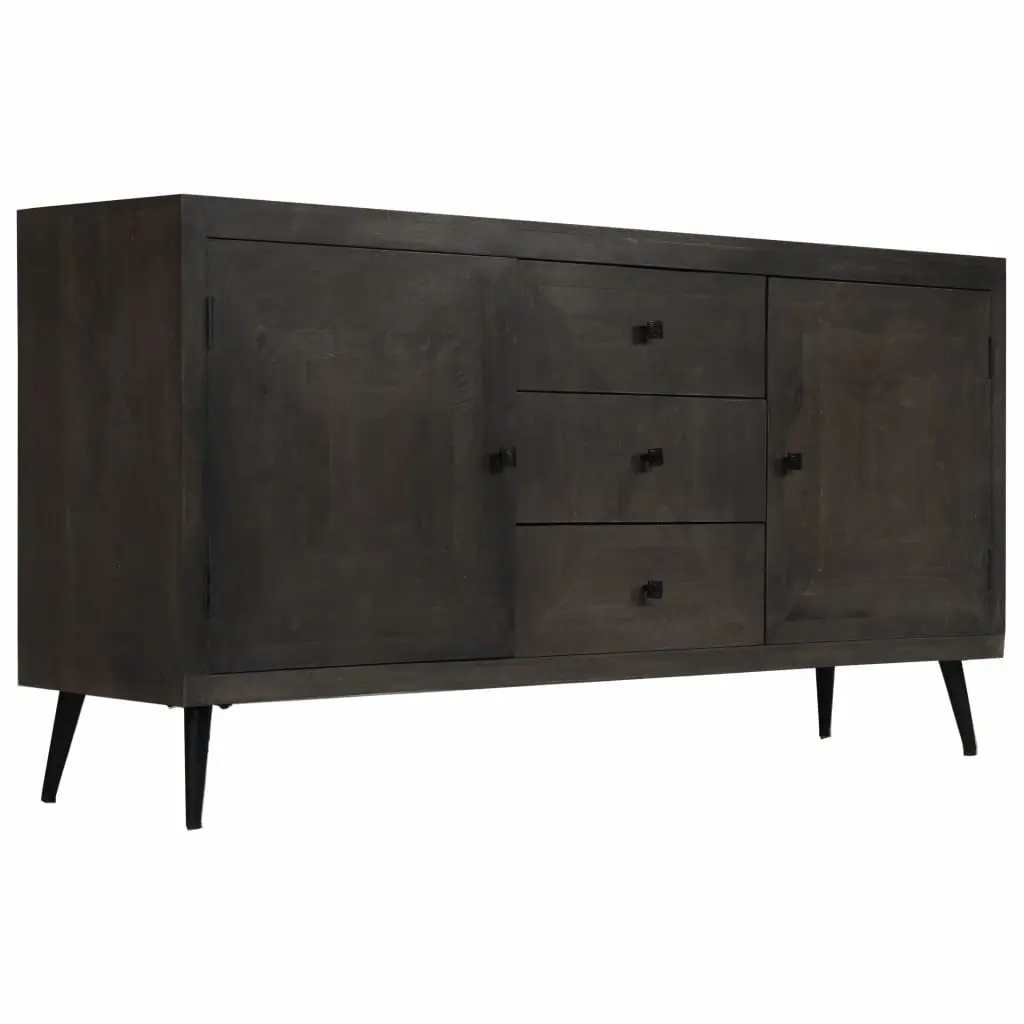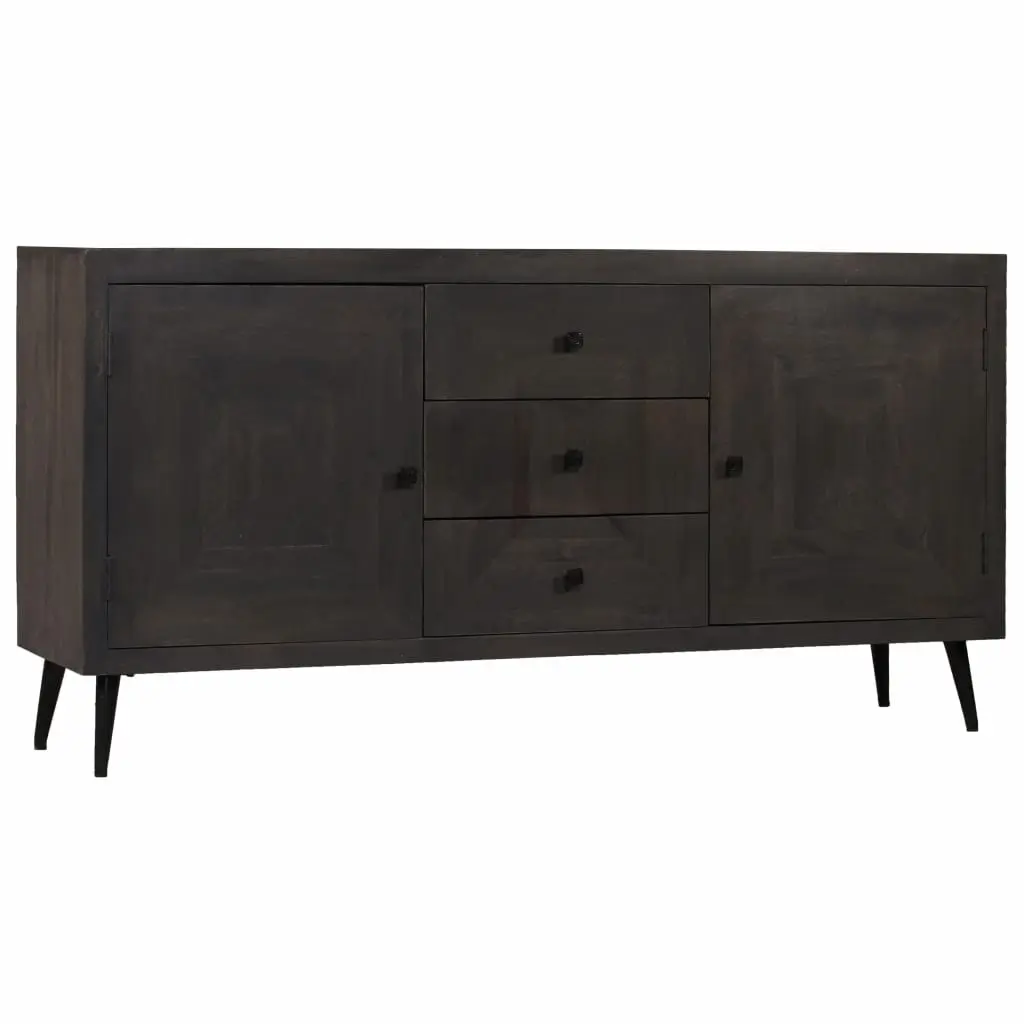 This solid wooden sideboard with lacquering will make a decorative as well as practical addition to your decor. It could also be used as highboard or drawer cabinet. The sideboard is handmade of mango wood which is solid, stable and beautiful, and the craftsmanship adds to its spectacular retro style. Every step of the process is carried out with the greatest care, be it polishing or lacquering. The craftsmanship and the beautiful wood grains make every piece of furniture unique and slightly different from the next. Designed with 2 large cabinets and 3 drawers, this cabinet provides you with spacious storage space for keeping your important items organized and within reach. Assembly is easy. Important note: Colours and grains may vary from piece to piece, making each of our sideboards unique; the delivery is random.