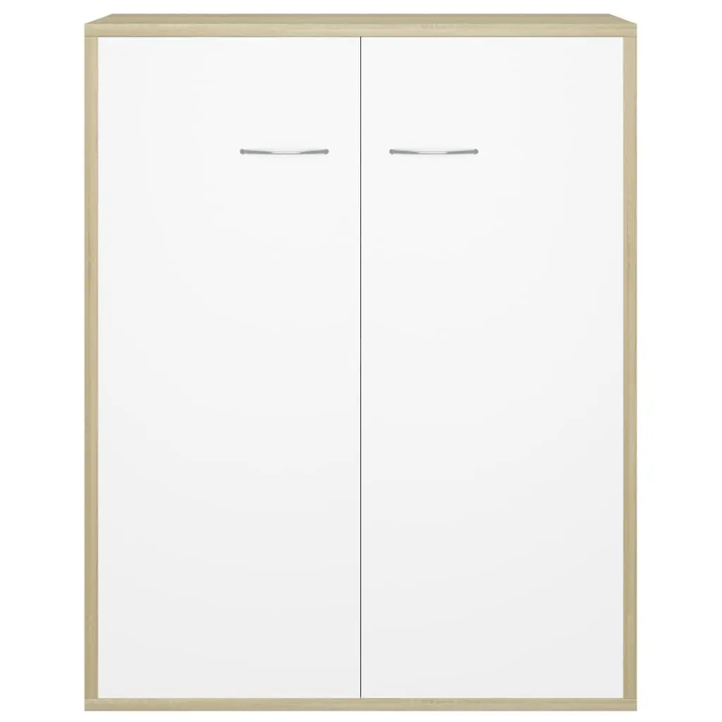 This sideboard, featuring a minimalist design, will make a practical as well as highly decorative addition to your home. With 2 large compartments inside the doors, the sideboard provides ample storage space for books, multimedia appliances and other items. The sturdy tabletop is ideal for displaying decorative objects, photo frames, or potted plants. It can also be used as a low board, side cabinet, etc. Thanks to the premium board material, this sideboard is built to last. The cabinet is easy to clean with a damp cloth.