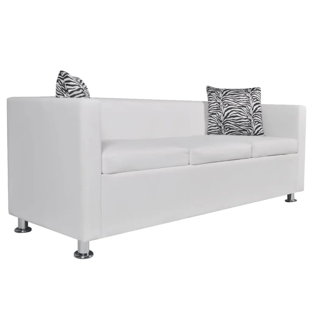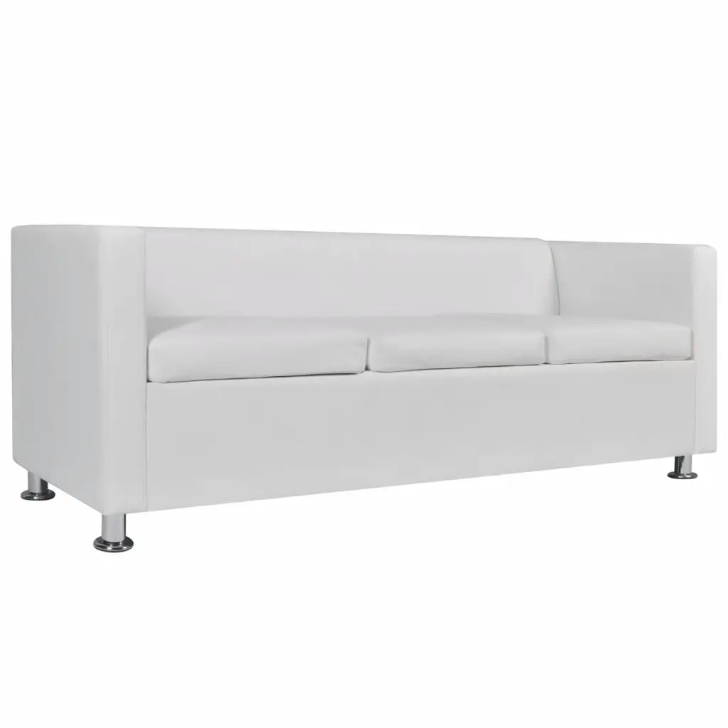 This 3-seater sofa, made from quality artificial leather, provides optimum seating comfort. It is a great choice to bring in an air of class into your home. This 3-seater sofa takes up little space and offers simple lines to decorate any room whether classic or modern. It features a wide seating area and thickly padded cushions for the ultimate seating comfort. The sofa is upholstered with high-quality and durable artificial leather that is hardwearing and easy to clean. Its simple design is elevated by the excellent stitching. The sofa is well constructed with sturdy feet that give long lasting durability. Delivery includes 1 x 3-seater sofa and 2 x loose pillows.