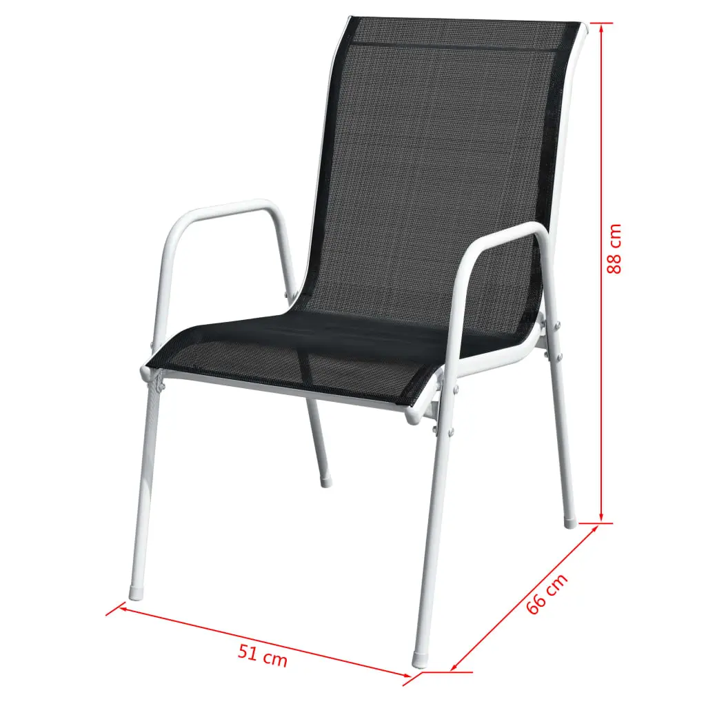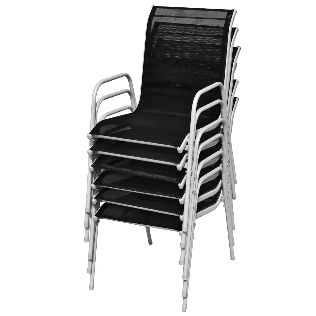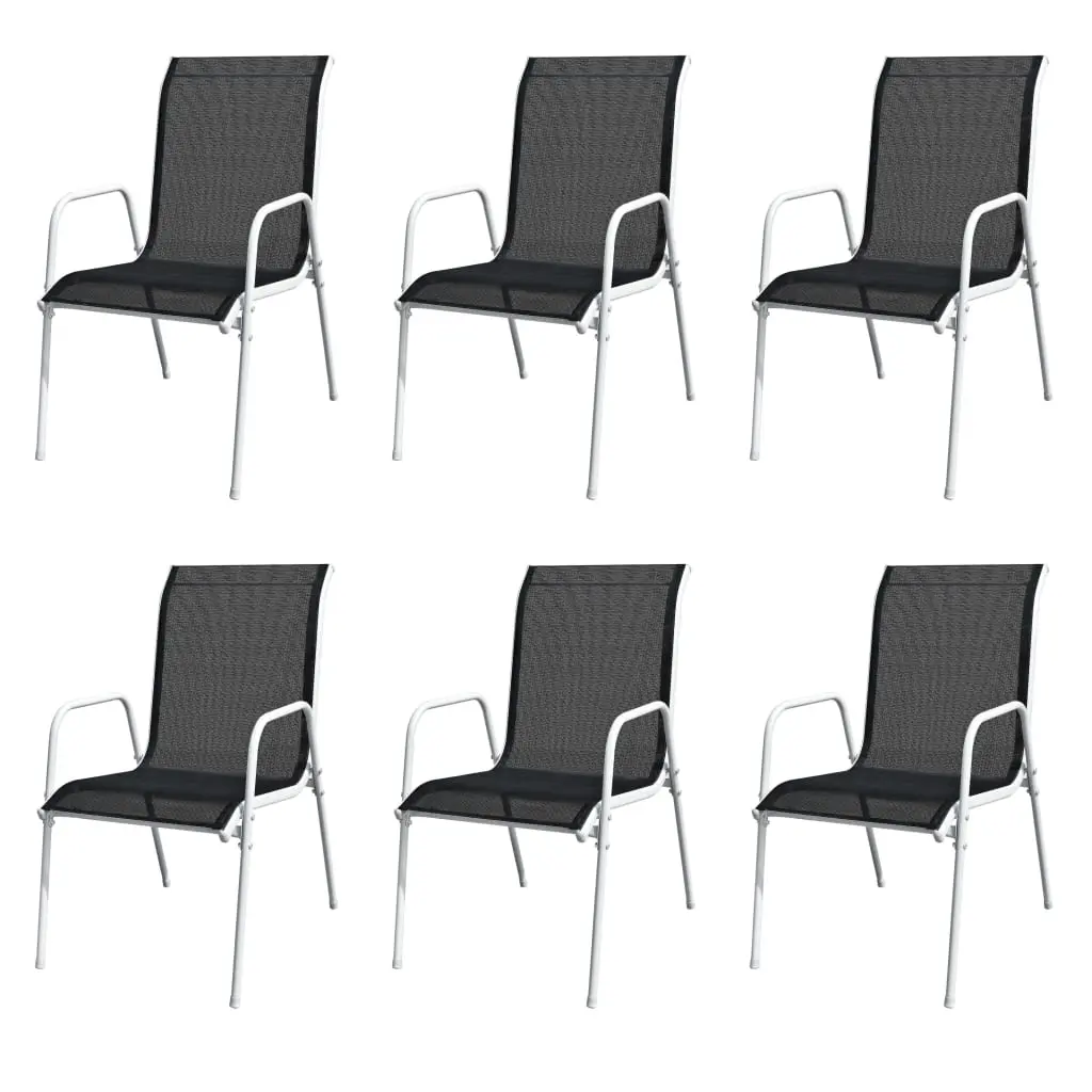 This contemporary outdoor dining chair set will become a real eye-catcher in your garden or dining room, or on your patio. The comfortable chairs have a high-quality powder-coated steel construction. Thanks to the strong textilene fabric, our chairs are weather resistant and easy to clean. The chairs can also be stacked to save space when not in use. Take a load off and enjoy your outdoor living space on these comfortable and durable garden dining chairs! Delivery includes 6 textilene dining chairs.