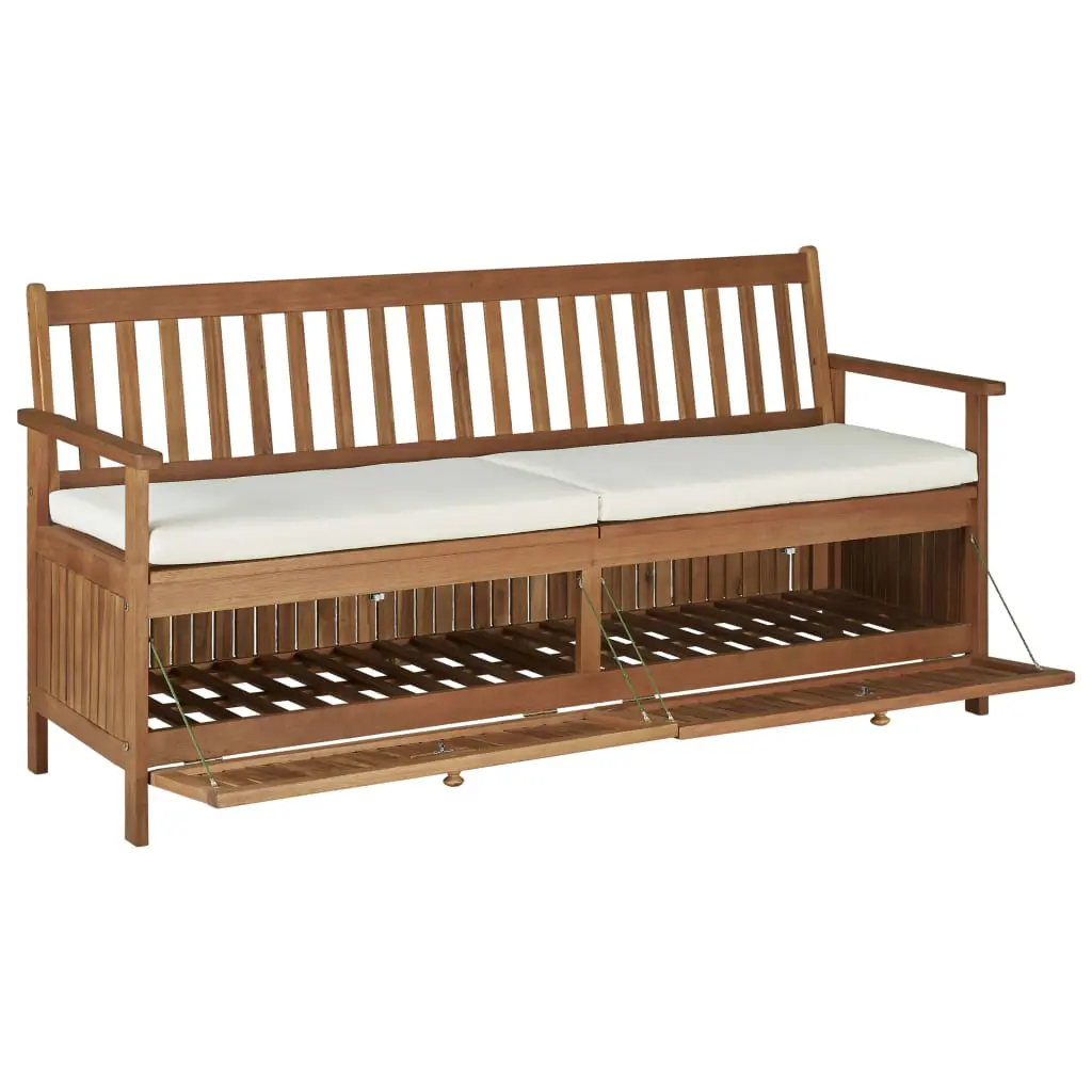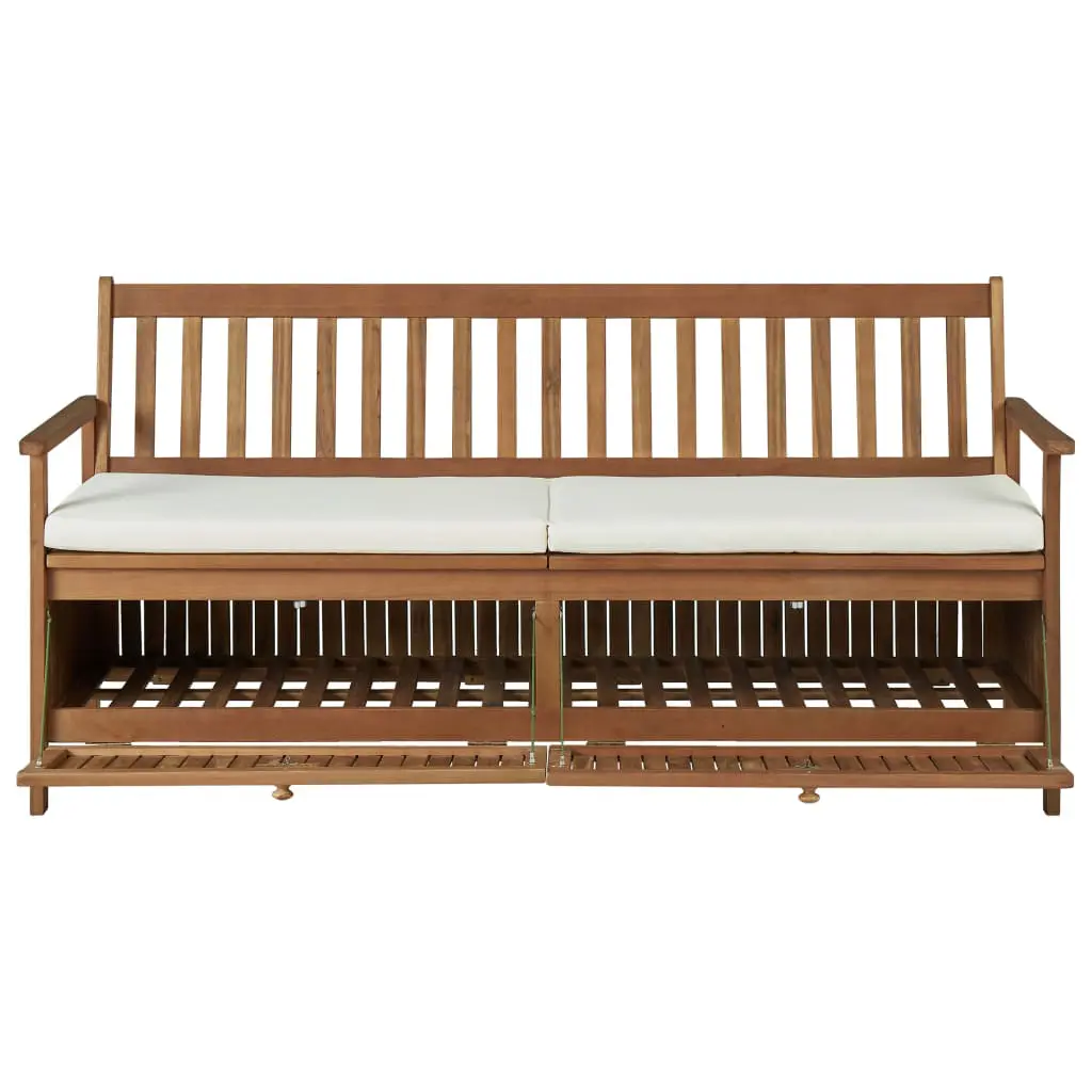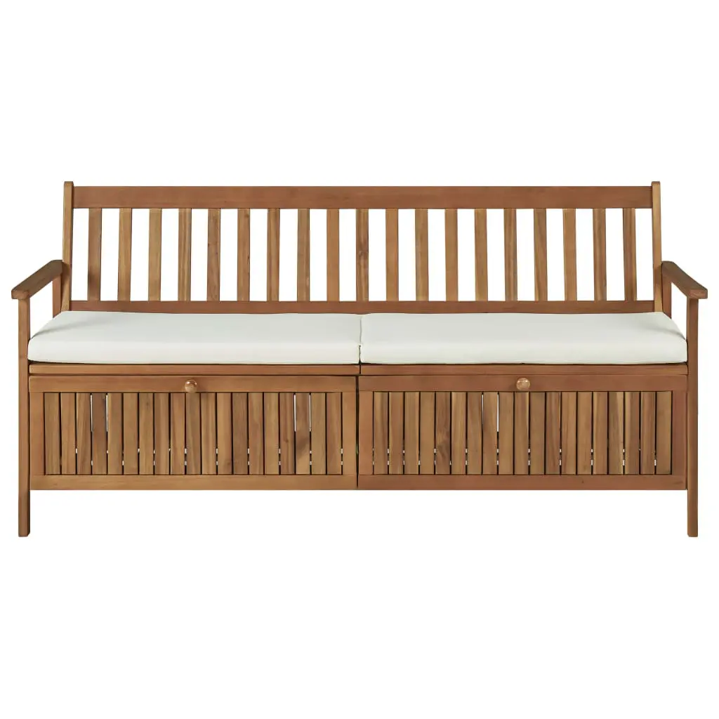 Cut the clutter in your interior or outdoor decor with this versatile wooden storage bench! This practical storage bench with one cushion will add a touch of natural charm to your garden, patio, terrace or backyard. Crafted from solid acacia wood and then finished with a natural oil finish, our outdoor bench is durable and sturdy, as well as easy to clean. Additionally, the entryway bench provides ample space with 1 large compartment with 2 doors. The outdoor couch is easy to assemble.
