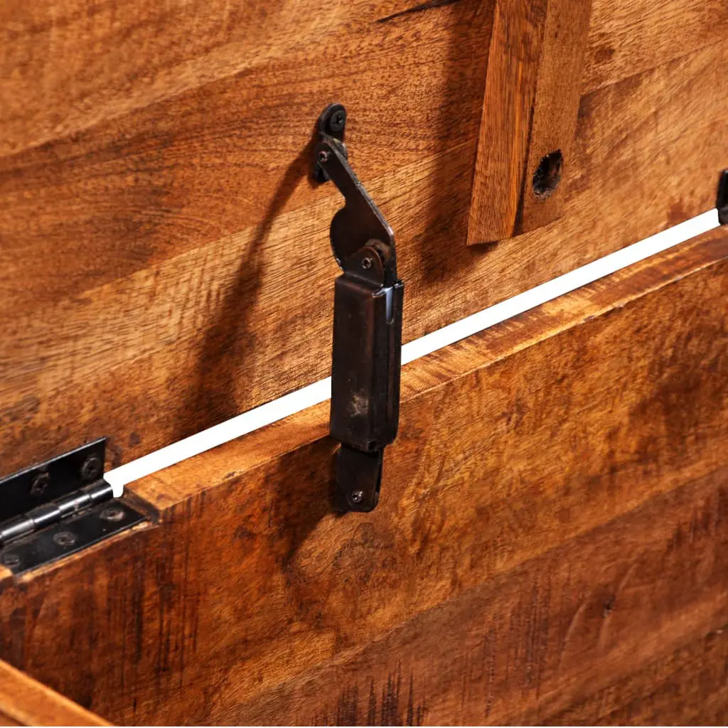 This wooden storage chests, a timeless accessory for your home, will give you ample storage space and help you to keep your things in order. This storage chest is fully handmade of solid wood, which means that every piece is unique and slightly different from the next. The rough mango wood is solid, stable, durable, and beautiful. Important note: Colours vary from piece to piece, making each of our storage chests unique; the delivery is random.