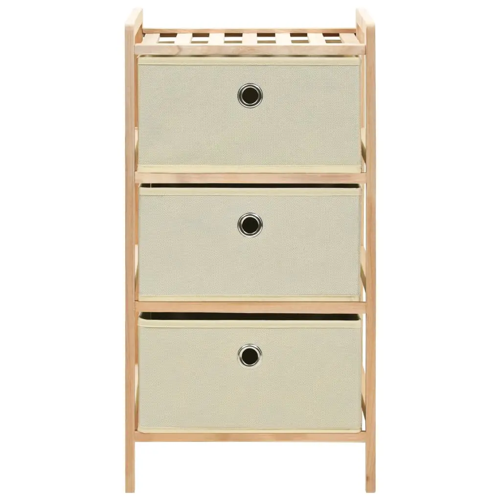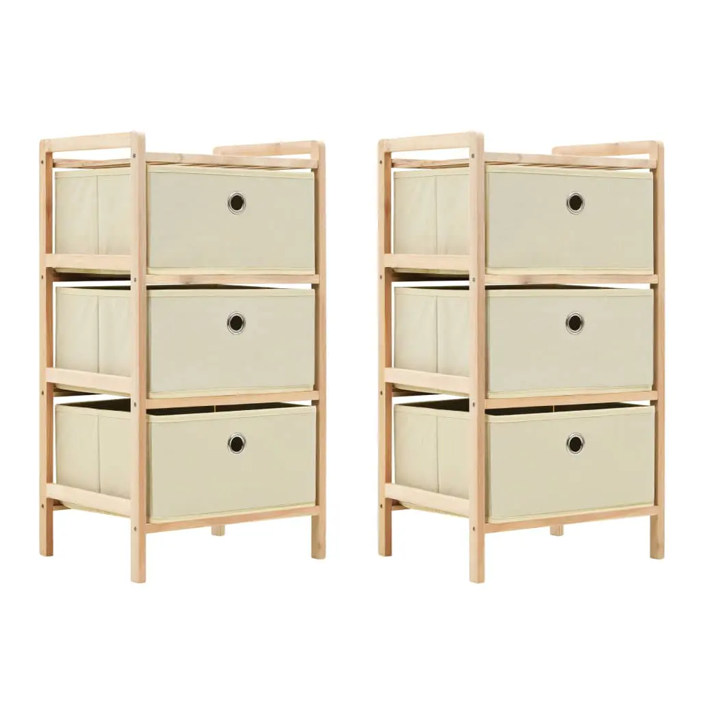 This solid wooden storage rack with 3 separate fabric baskets will provide enough space to store your everyday objects. The storage unit is lightweight and can be easily placed anywhere in your home. The storage drawers are made of a light coloured fabric to give an elegant touch to your interior. The storage rack is easy to assemble. Delivery includes 2 storage racks.