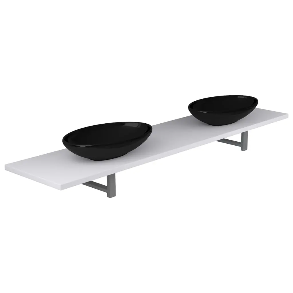 Our practical and timeless bathroom furniture set consists of a wall shelf and two oval-shaped basins. It will make a stylish addition to any bathroom, washroom or powder room. Made of the strong material, the bathroom wall shelf is exceedingly stable and durable, making it the perfect place to place the included ceramic basins. This ceramic basins have a high gloss finish and are easy to clean with a damp cloth. In addition, the bathroom furniture can be easily installed on the wall with our included brackets and mounting materials. The perfect combination of the wall shelf and wash basin will be the focal point in your bathroom! Please note that no drain is included in delivery.