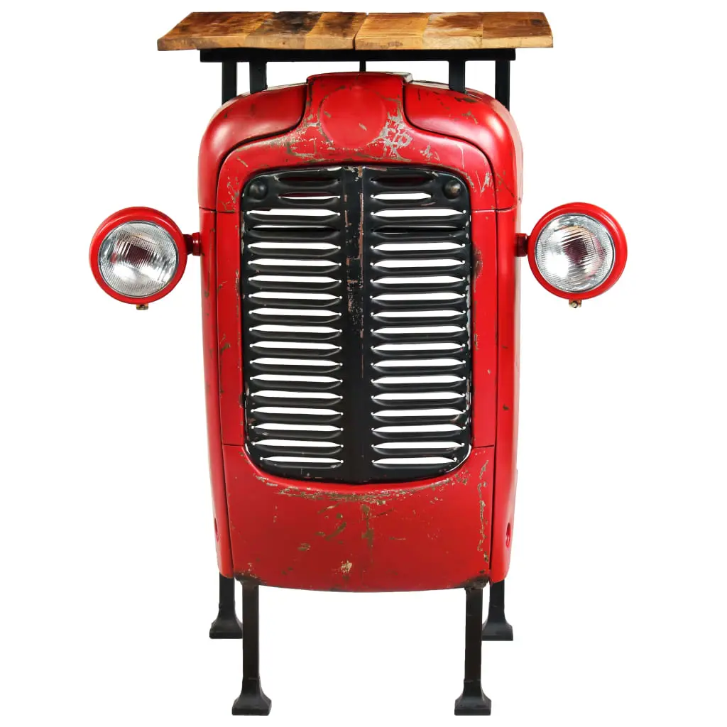 This wooden tractor bar table oozes rustic, industrial style and will make a great addition to your kitchen or dining room decor! With a solid mango wood tabletop and a sturdy steel frame, this bar table is robust and durable. The authentic-looking tractor bonnet and the steel construction add to the table’s industrial style. The signs of wear of the tractor as well as the wood grain give the table its own history and a unique look. Every step of the construction process is carried out with the greatest care, be it polishing, painting or lacquering. The table is easy to assemble. Important note: The colour and wood grains may vary from piece to piece, making each item unique and slightly different from the next; the delivery is random.