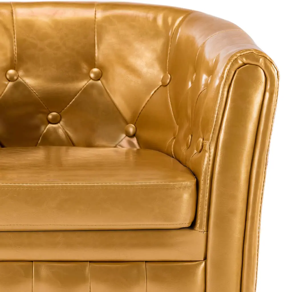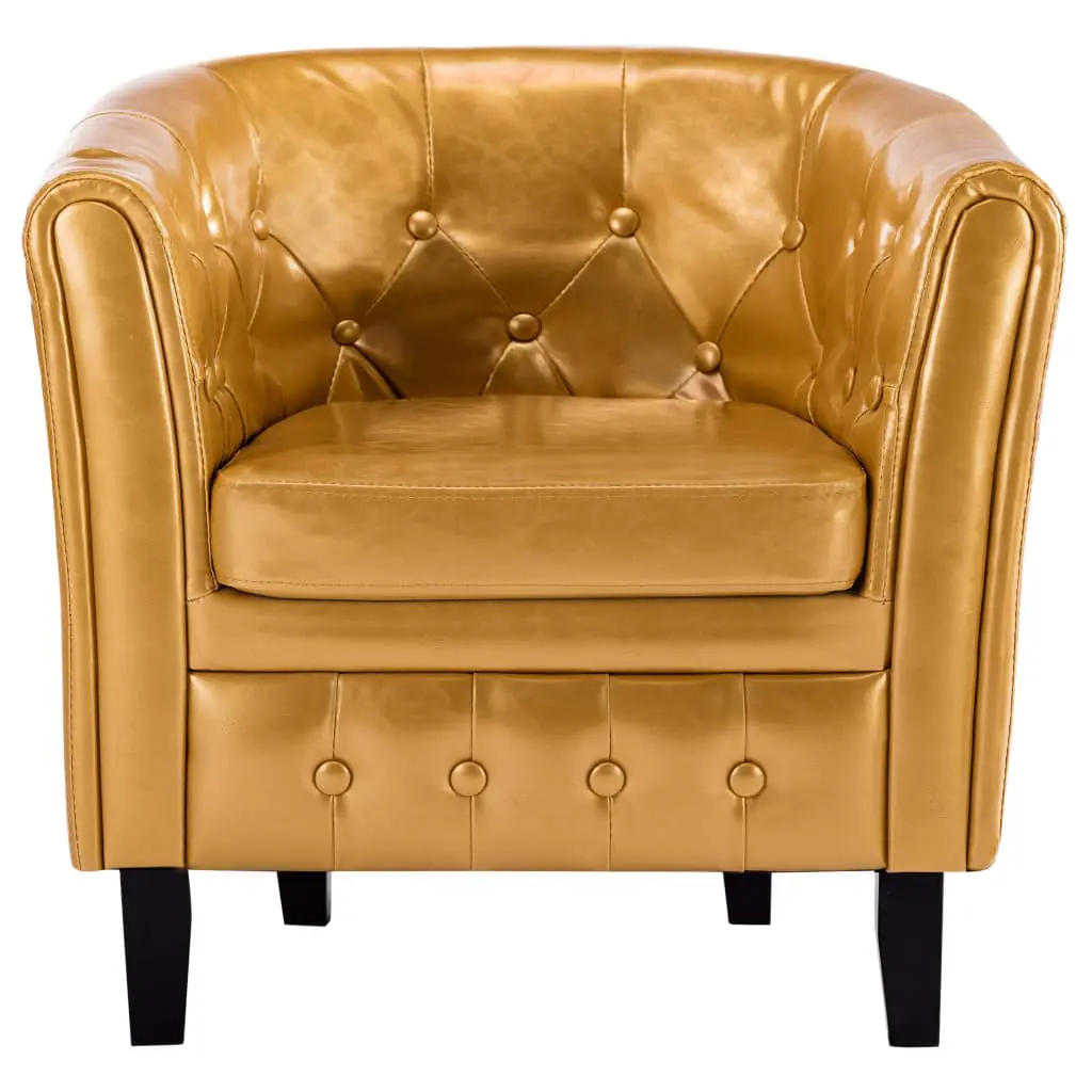 This tub chair will create an elegant ambiance in all waiting and reception areas, offices and private residential areas. With its tufted and studded detailing and gracefully curved arms, this armchair will add a touch of luxury, class and style to any interior. The thickly padded seat is highly comfortable, while the wooden structure is sturdy and durable. The quality artificial leather upholstery is easy to clean and hardwearing.