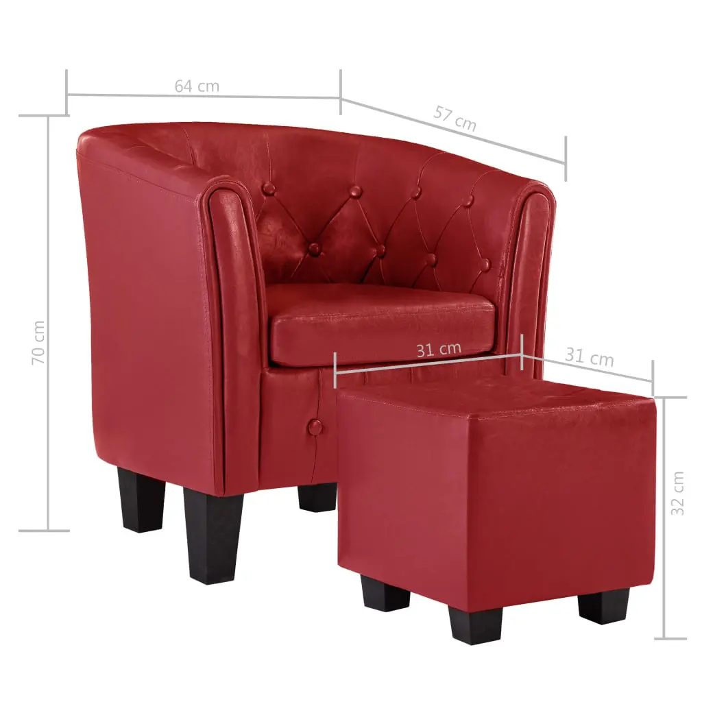 What can be better than relaxing in a comfortable armchair at the end of a busy day? Our sofa chair with footstool will be the first thing you want to head for after a long day. The tub chair is upholstered in faux leather, which makes it easy to clean. The solid construction ensures its long-term use. Thanks to the thickly padded seat and backrest, the couch is the perfect place for you to sit comfortably and fully relax while reading, chatting, watching TV or listening to music. Additionally, the footrest will also bring you extra sitting comfort. Delivery includes 1 armchair and 1 footrest.
