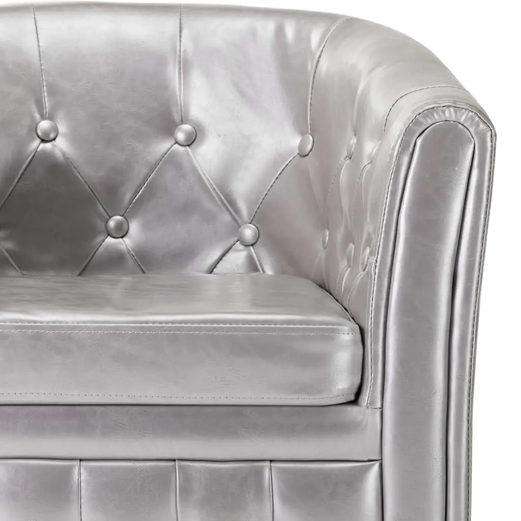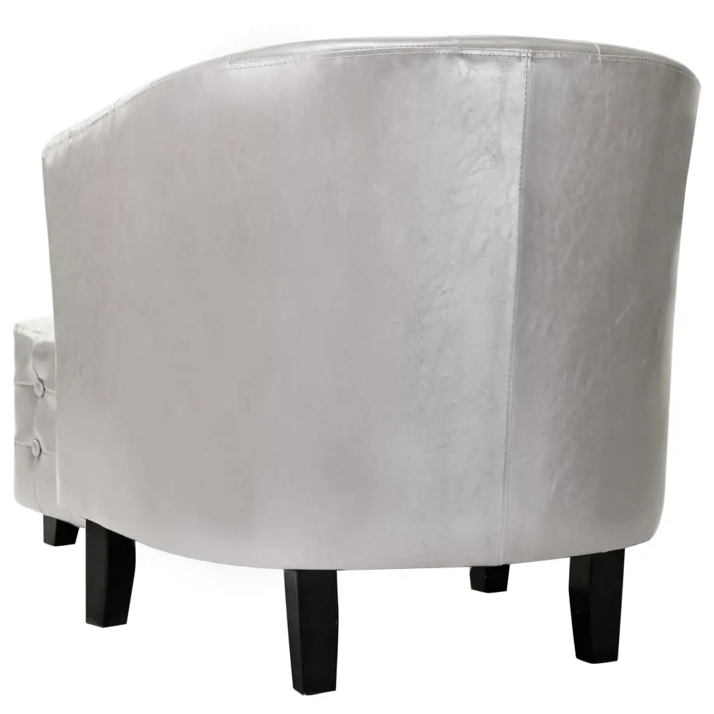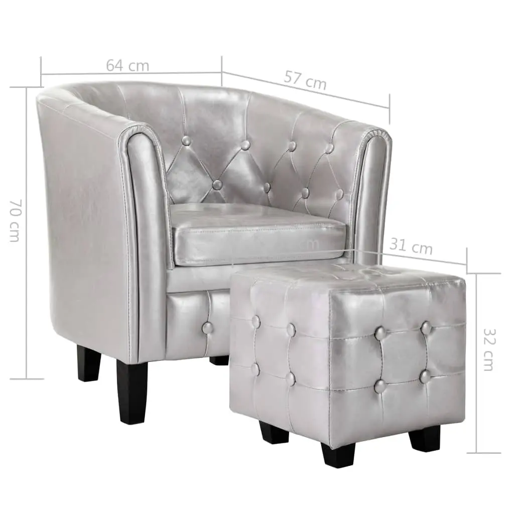 This tub chair and stool set will create an elegant ambiance in all waiting and reception areas, offices and private residential areas. With its tufted and studded detailing and gracefully curved arms, this armchair and footrest set will add a touch of luxury, class and style to any interior. The thickly padded seat is highly comfortable, while the wooden structure is sturdy and durable. The quality artificial leather upholstery is easy to clean and hardwearing. Delivery includes an armchair and a foot stool.