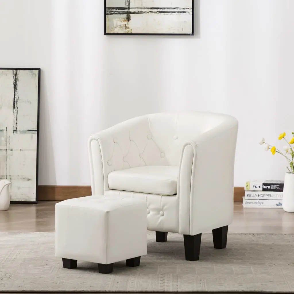 What can be better than relaxing in a comfortable armchair at the end of a busy day? Our sofa chair with footstool will be the first thing you want to head for after a long day. The tub chair is upholstered in faux leather, which makes it easy to clean. The solid construction ensures its long-term use. Thanks to the thickly padded seat and backrest, the couch is the perfect place for you to sit comfortably and fully relax while reading, chatting, watching TV or listening to music. Additionally, the footrest will also bring you extra sitting comfort. Delivery includes 1 armchair and 1 footrest.