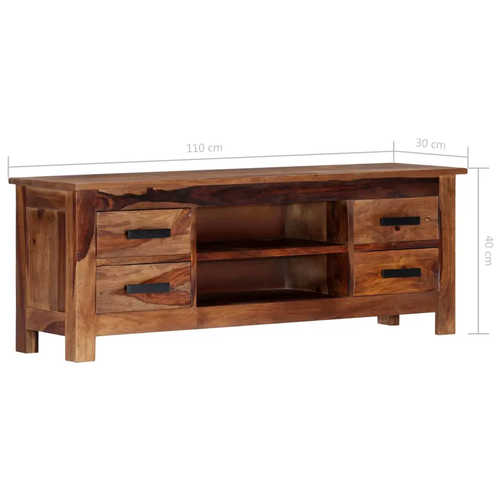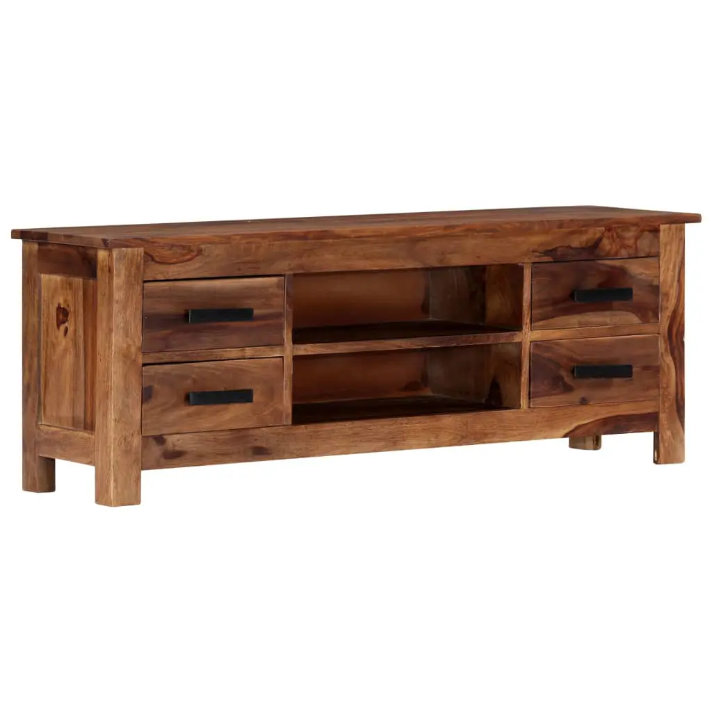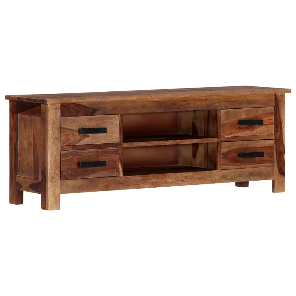 This TV cabinet exudes a rustic charm. It will be a truly centrepiece of your interior. The sideboard is made of solid Sheesham wood, which is also known as rosewood or Palisander, is a tropical hardwood that is famous for its natural grains and smooth texture. Additionally, it doesn’t warp or split, and features natural decay resistance. Therefore this beautifully-designed lowboard is exceedingly stable, durable and captivating. The perfect craftsmanship guarantees that every step of the process is carried out with the greatest care, be it polishing or lacquering. The stereo cabinet is fully handmade and the aesthetically-appealing wood grains make every piece distinctive and slightly different from each other. This HiFi cabinet features 4 drawers and 2 compartments, providing ample space for storing your multimedia appliances, books, as well as various other items. This item is already assembled; no assembly is required. Important note: The wood grains vary from piece to piece, making each piece unique; the delivery is random.