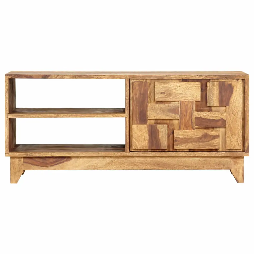 Our wooden TV cabinet will make a timeless addition to your living room or entertainment area decor. Crafted from solid Sheesham wood, this TV cabinet is durable and stable. Sheesham is a tropical hardwood that is famous for its rich grains and also known as rosewood or palisander. This TV cabinet with 1 door and 2 shelves provides ample space for keeping your DVD players, game consoles, streaming devices, media carriers, etc. neatly organised. The beautiful grains on the cabinet’s door make this cabinet more attractive and add to its rustic style. Every step of the construction process is carried out with the greatest care, be it polishing, painting or lacquering. The TV cabinet is easy to assemble. Important note: The colours and grains vary from piece to piece, making each piece unique and slightly different from the next; the delivery is random.