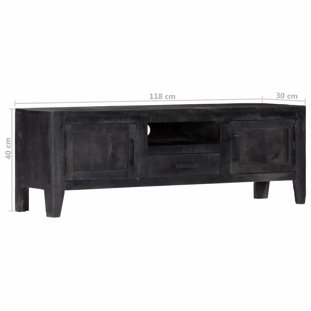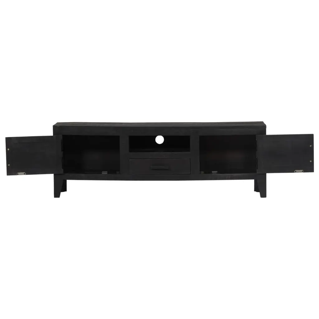 Featuring a trendy yet practical design, this solid wooden TV cabinet will definitely become a focal point of your room. This vintage-style TV cabinet, made of solid mango wood, will make a timeless addition to your home. Mango wood is a dense and robust hardwood which has beautiful brown or golden streaks and contours on its surface. Every step of the process is carried out with the greatest care, be it polishing, painting or lacquering. It has 1 drawer, 1 open compartment and 2 doors for storing knick-knacks and an open compartment for keeping multimedia appliances, gaming consoles and magazines. Important note: Colours vary from piece to piece, making each of our TV cabinets unique; the delivery is random.