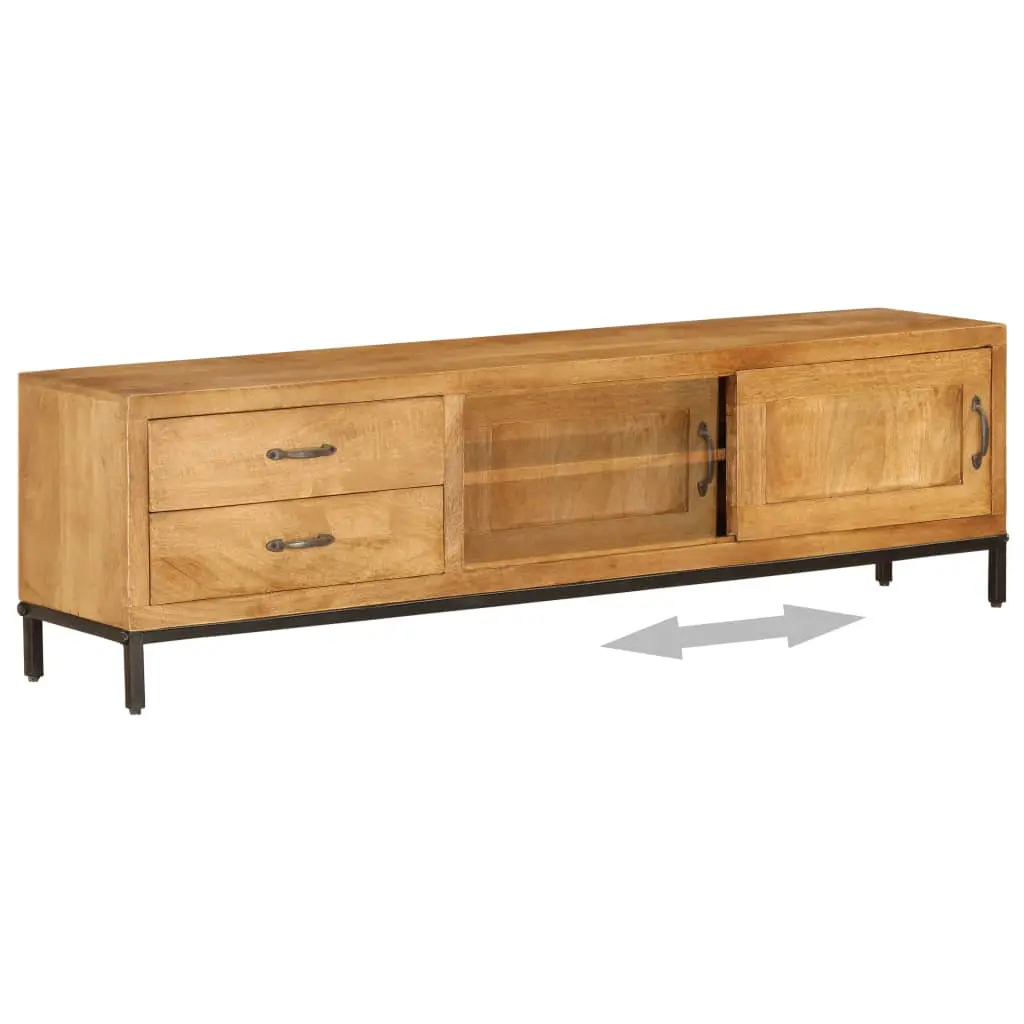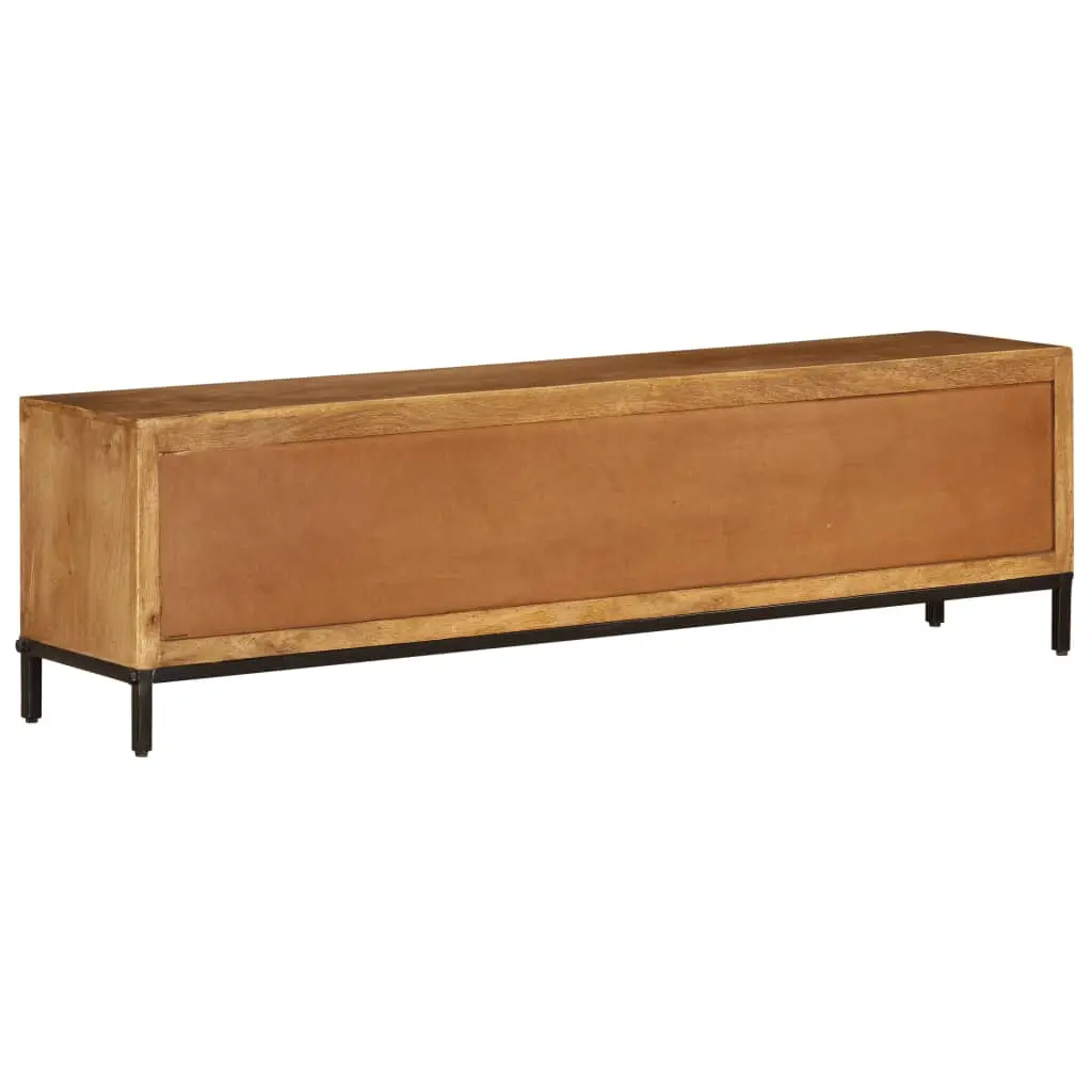This wooden TV stand with a retro style will become the focal point of your living room or entertainment area. It can also be used as a sideboard, side cabinet, etc. The TV cabinet is handmade of mango wood which is solid, stable, durable and beautiful, and the craftsmanship adds to its spectacular retro style. Every step of the process is carried out with the greatest care, be it polishing, painting or lacquering. The craftsmanship and the beautiful wood grains make every piece of furniture unique and slightly different from the next. The steel legs ensure great stability. The 2 shelves and 2 drawers provide ample space for you to keep your DVD player, game console, streaming device and media carriers neatly organised. Important note: The colours vary from piece to piece, making each of our TV cabinets unique; the delivery is random.