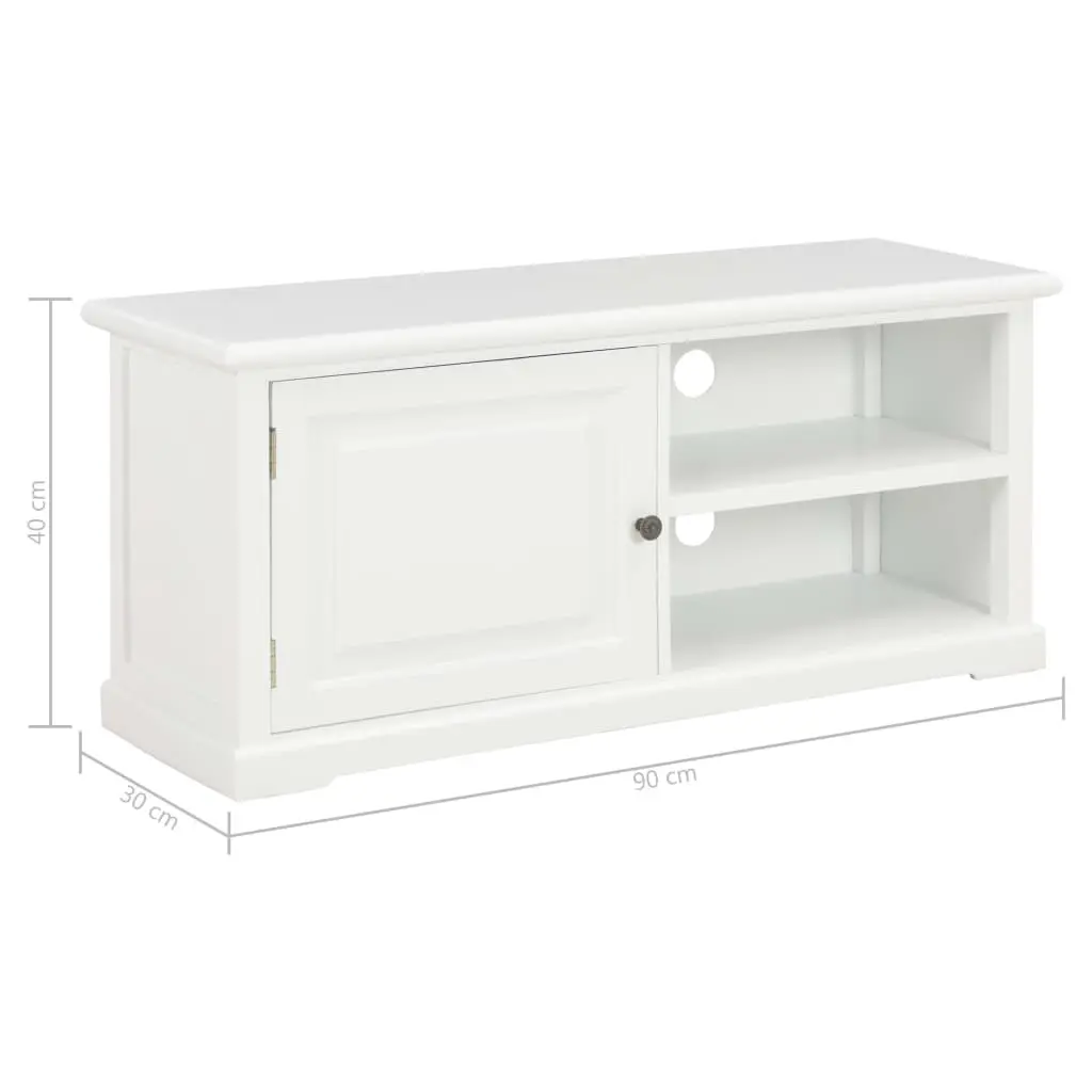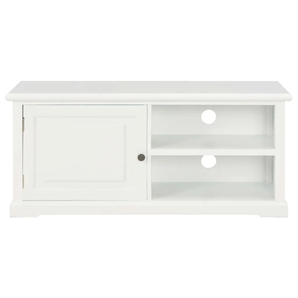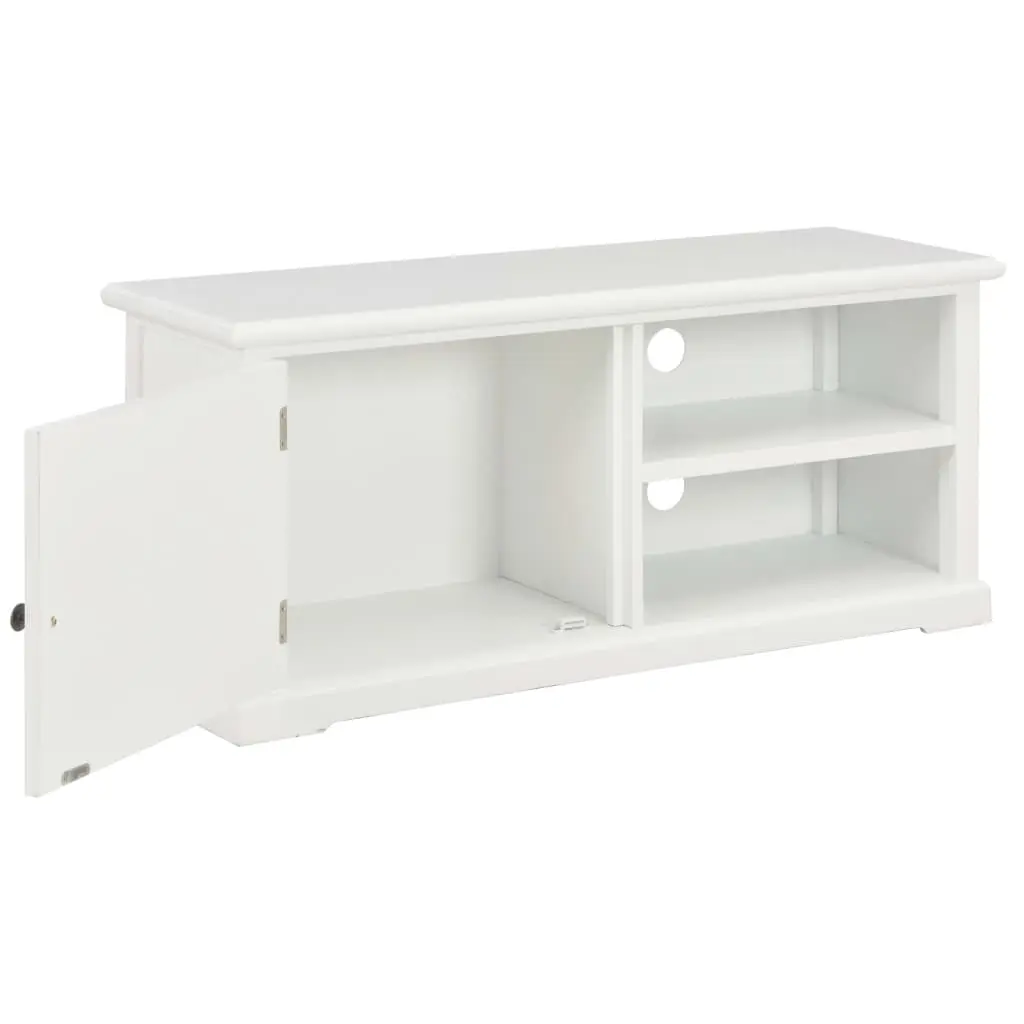 Featuring a trendy yet practical design, this wooden TV cabinet will definitely become a focal point of your room. Made of MDF and solid Paulownia wood, this modern TV stand features 1 door and 2 open compartments for keeping various of items such as multimedia appliances, gaming consoles and magazines, etc. Thanks to the 2 cable accesses, all the cables will be neatly hidden. Our HiFi cabinet is easy to assemble.