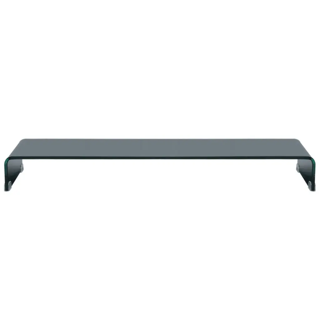 This practical TV stand has a tempered glass construction. The sleek, streamlined design of this understated TV unit will add a modern touch to your living space. This glass shelf can be used as a TV stand or riser for your desktop monitor, television, laptop and other multimedia devices. With the glass shelf raising the monitor, you will have a better view of the screen while sitting comfortably, which helps to reduce the strain and discomfort on your neck or back. The space underneath can accommodate your DVD player, game console, streaming device, receivers, and media carriers. The glass frame is tempered for added strength and safety. The smooth surface is easy to clean with only a damp cloth.