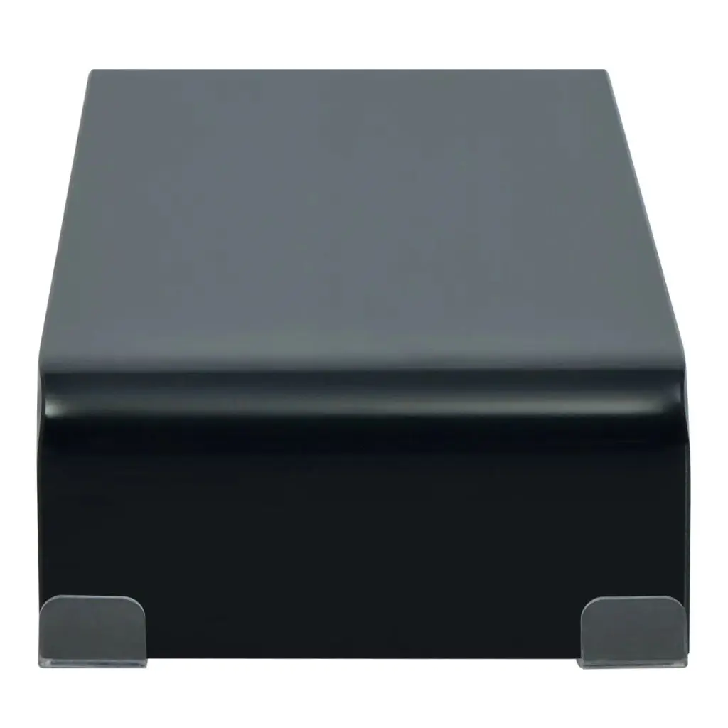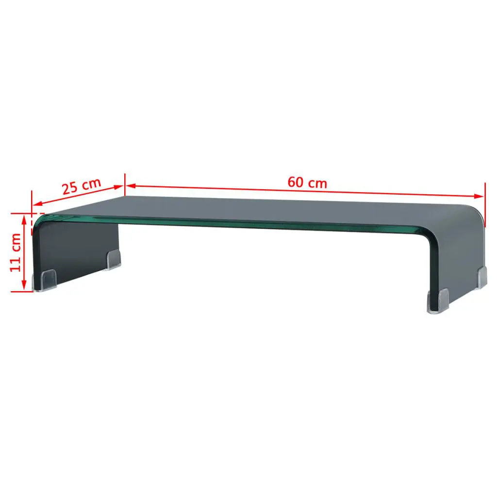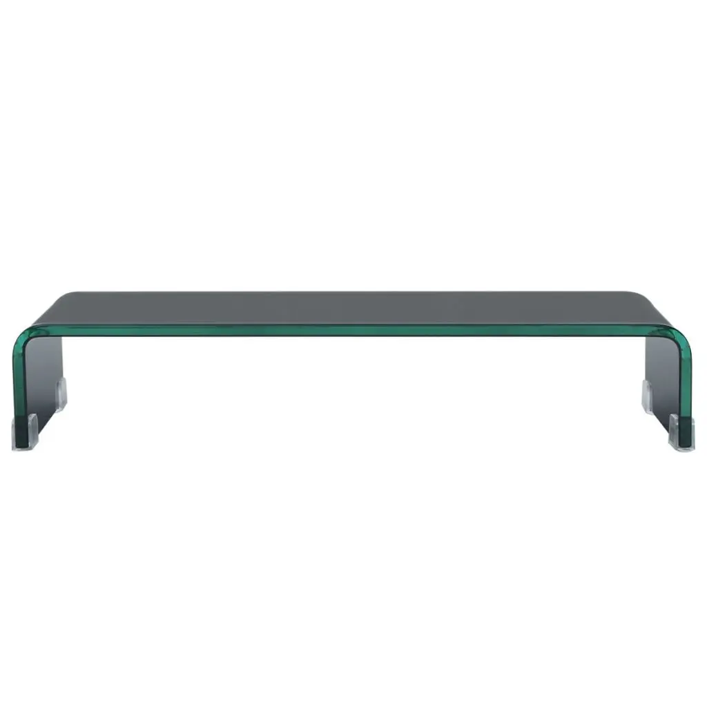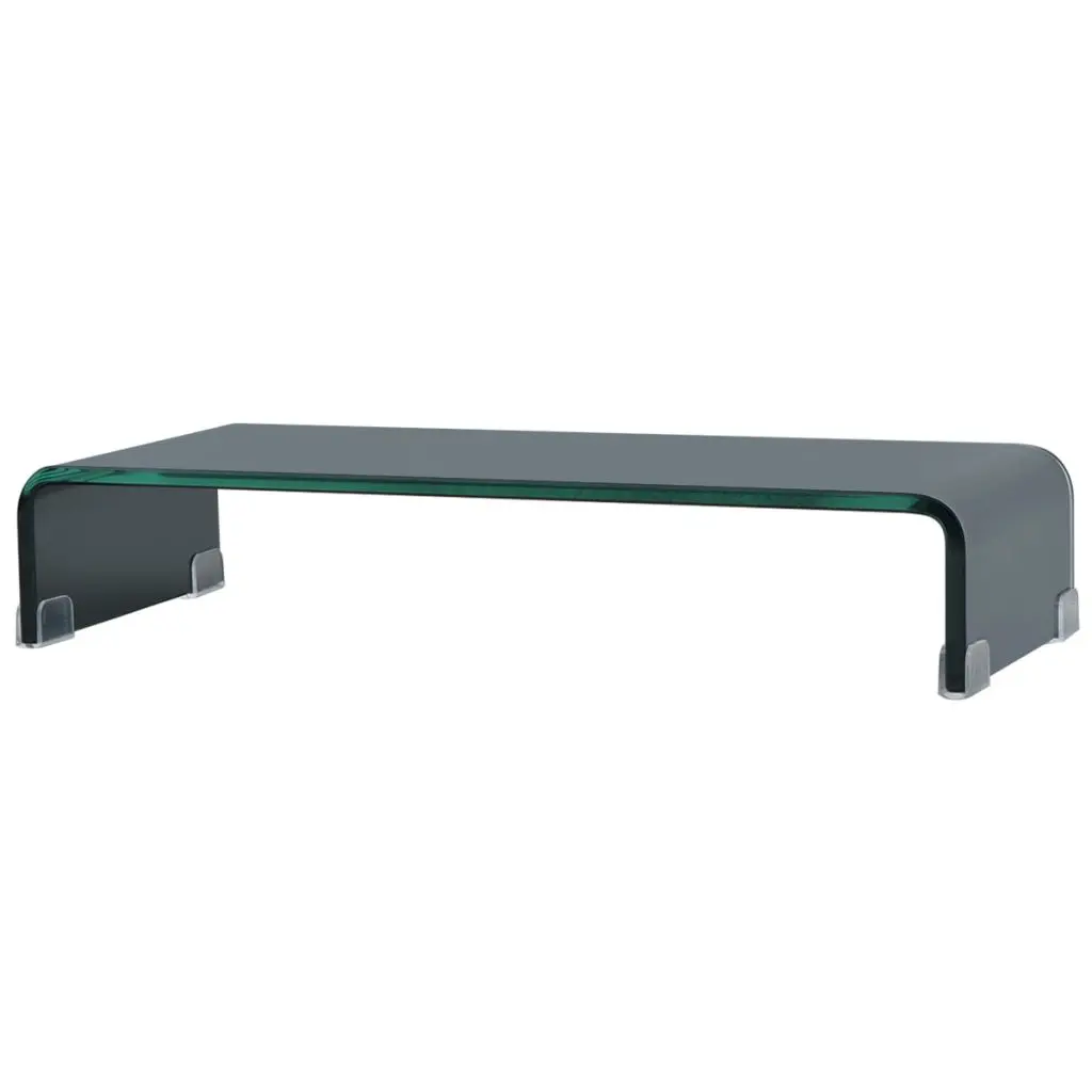 This practical TV stand has a tempered glass construction. The sleek, streamlined design of this understated TV unit will add a modern touch to your living space. This glass shelf can be used as a TV stand or riser for your desktop monitor, television, laptop and other multimedia devices. With the glass shelf raising the monitor, you will have a better view of the screen while sitting comfortably, which helps to reduce the strain and discomfort on your neck or back. The space underneath can accommodate your DVD player, game console, streaming device, receivers, and media carriers. The glass frame is tempered for added strength and safety. The smooth surface is easy to clean with only a damp cloth.