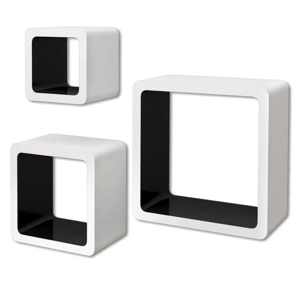 This set consists of 6 shelf cubes that will become the focal point of any room. With an invisible mounting system, these shelf cubes are easy to install and serve as the perfect place to store the items such as awards, books, collectables, ornaments, etc. These wall cubes can be mounted to the wall or just stacked on the floor to form a unique storage and display solution. You can mount them separately or together. These display shelf cubes will suit any decor and turn an empty wall into a feature! These hanging shelf cubes are made of high-quality MDF with a matte finish. Delivery includes 6 wall shelf cubes, screws and wall plugs.
