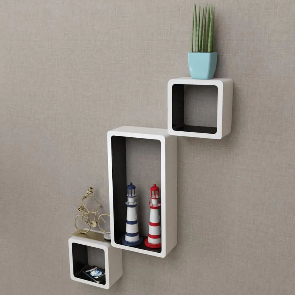 This set consists of 6 shelf cubes that will become the focal point of any room. With an invisible mounting system, these shelf cubes are easy to install and serve as the perfect place to store the items such as awards, books, collectables, ornaments, etc. These wall cubes can be mounted to the wall or just stacked on the floor to form a unique storage and display solution. You can mount them separately or together. These display shelf cubes will suit any decor and turn an empty wall into a feature! These hanging shelf cubes are made of high-quality MDF with a matte finish. Delivery includes 6 wall shelf cubes, screws and wall plugs.