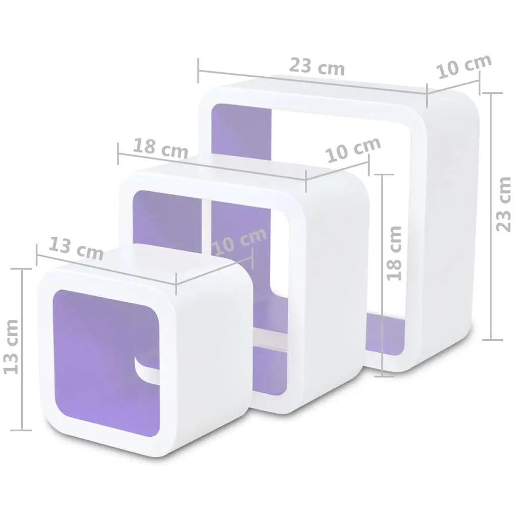 This set consists of 6 shelf cubes that will become the focal point of any room. With an invisible mounting system, these shelf cubes are easy to install and serve as the perfect place to store the items such as awards, books, collectables, ornaments, etc. These wall cubes can be mounted to the wall or just stacked on the floor to form a unique storage and display solution. You can mount them separately or together. These display shelf cubes will suit any decor and turn an empty wall into a feature! These hanging shelf cubes are made of high-quality MDF with a matte finish. Delivery includes 6 wall shelf cubes, screws and wall plugs.