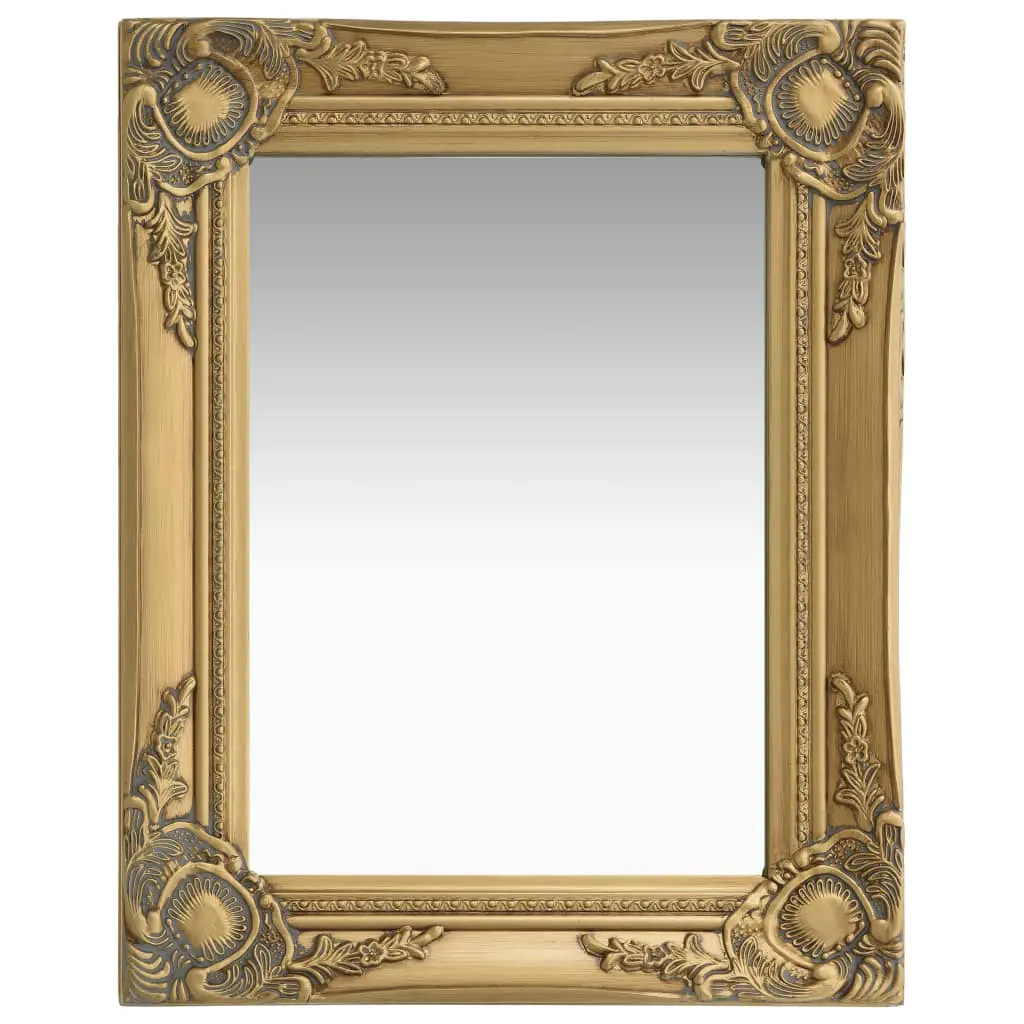 This beautifully designed wall mirror with an ornate frame creates a classic atmosphere in your bathroom, dressing room or bathroom. The antique-look mirror features a sturdy wooden frame that is meticulously crafted in a decorative Baroque pattern. Additionally, the bevelled edge gives this mirror a unique look. The mirror is ready to be wall-mounted thanks to the already installed hooks on the backboard.