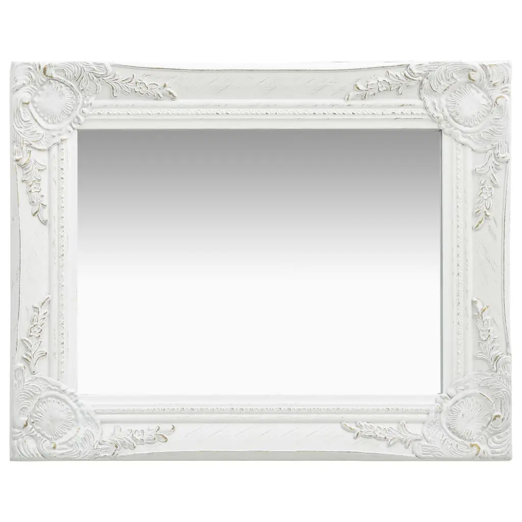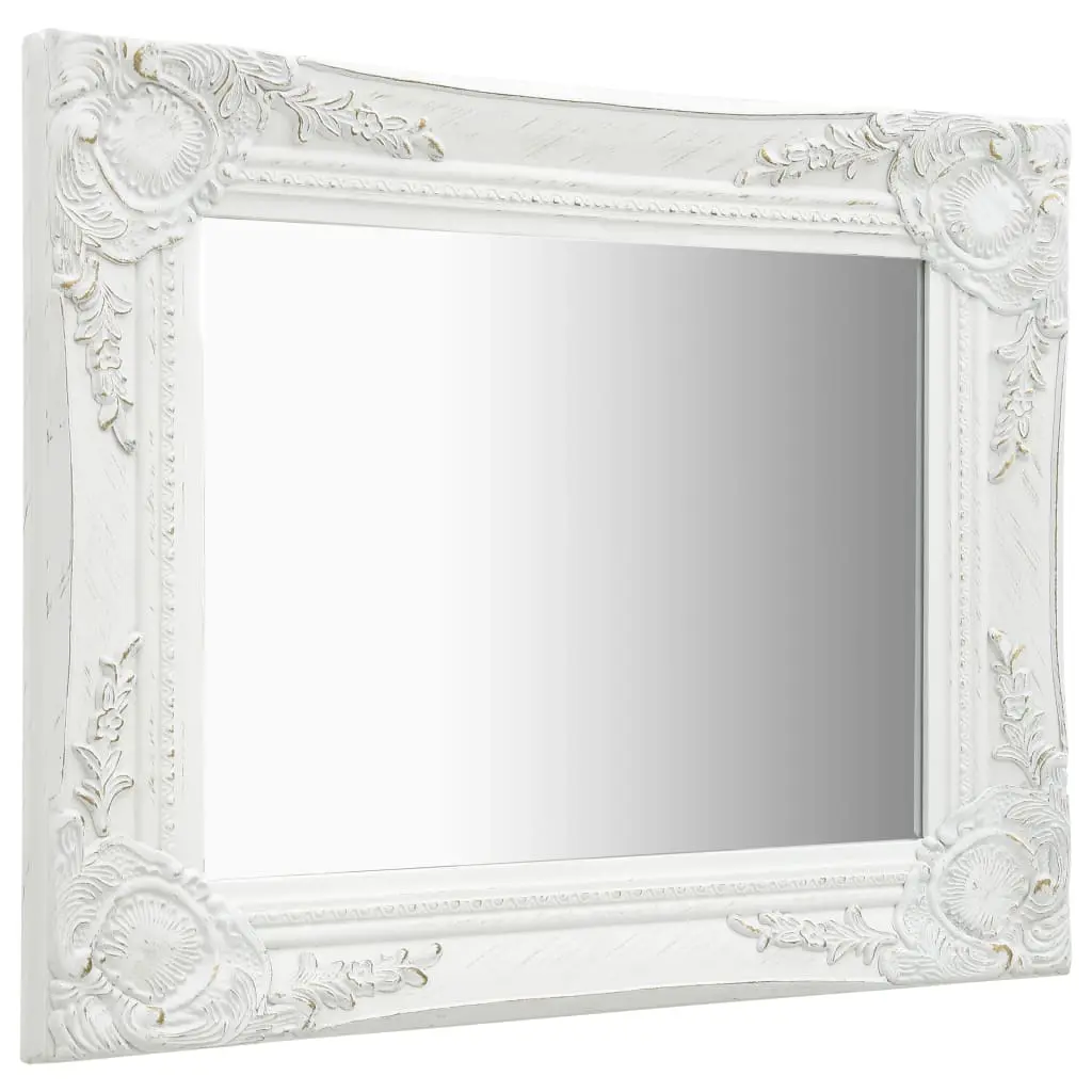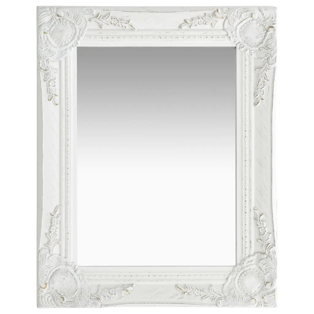This beautifully designed wall mirror with an ornate frame creates a classic atmosphere in your bathroom, dressing room or bathroom. The antique-look mirror features a sturdy wooden frame that is meticulously crafted in a decorative Baroque pattern. Additionally, the bevelled edge gives this mirror a unique look. The mirror is ready to be wall-mounted thanks to the already installed hooks on the backboard.