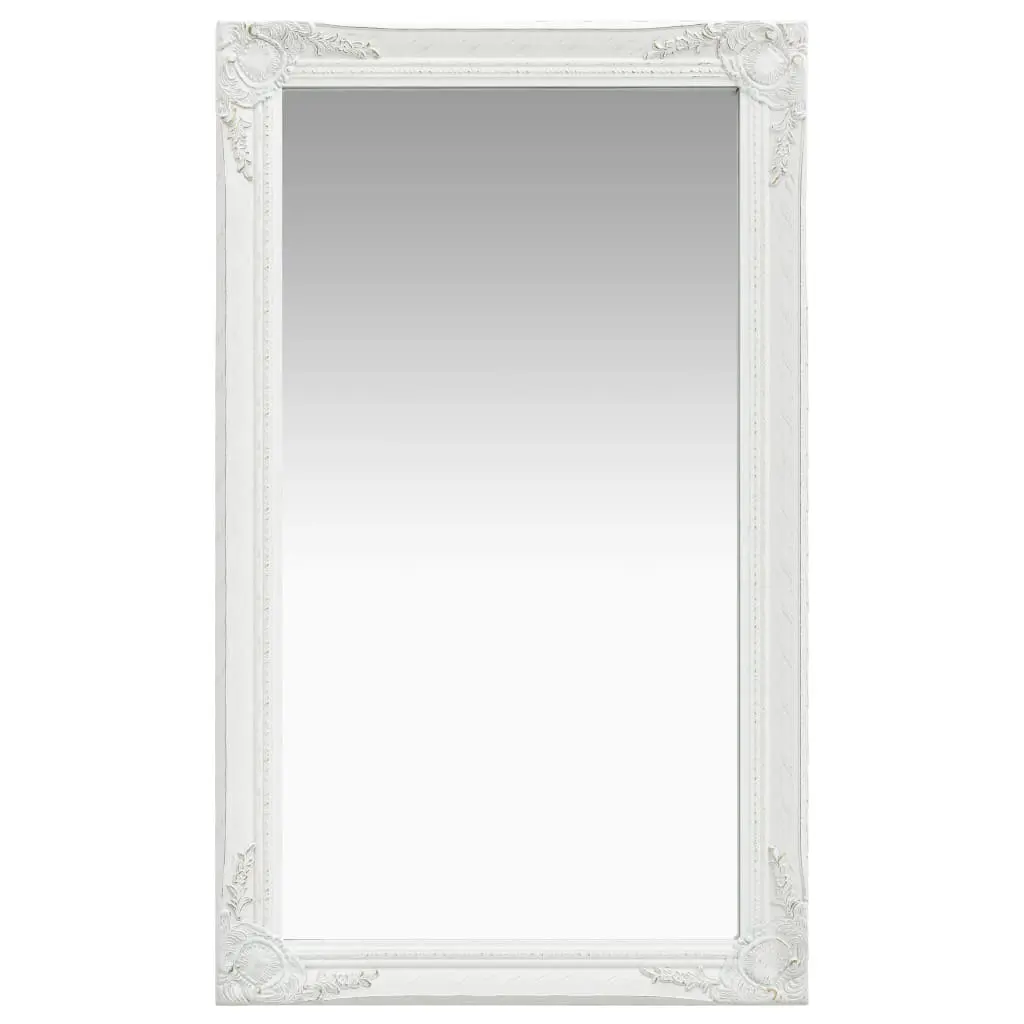This beautifully designed wall mirror with an ornate frame creates a classic atmosphere in your bathroom, dressing room or bathroom. The antique-look mirror features a sturdy wooden frame that is meticulously crafted in a decorative Baroque pattern. Additionally, the bevelled edge gives this mirror a unique look. The mirror is ready to be wall-mounted thanks to the already installed hooks on the backboard.