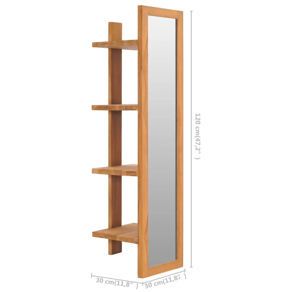 This wall mirror with shelves, featuring a colonial yet rustic style, provides double functions in your bathroom decor. The bathroom mirror is made of solid teak wood with a natural finish, making it quite stable and easy to maintain. This wooden mirror has four open shelves at the backside, so it not only can be used to look yourself in the mirror but also offers sufficient space to place shampoos, cosmetics, toothpastes, etc. Additionally, for your convenience, there are mounting holes inserted in this product when it is put on the wall.