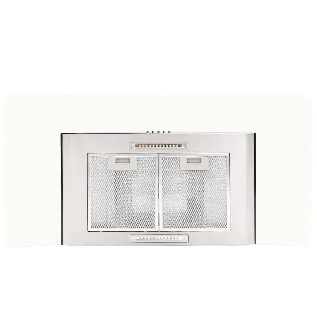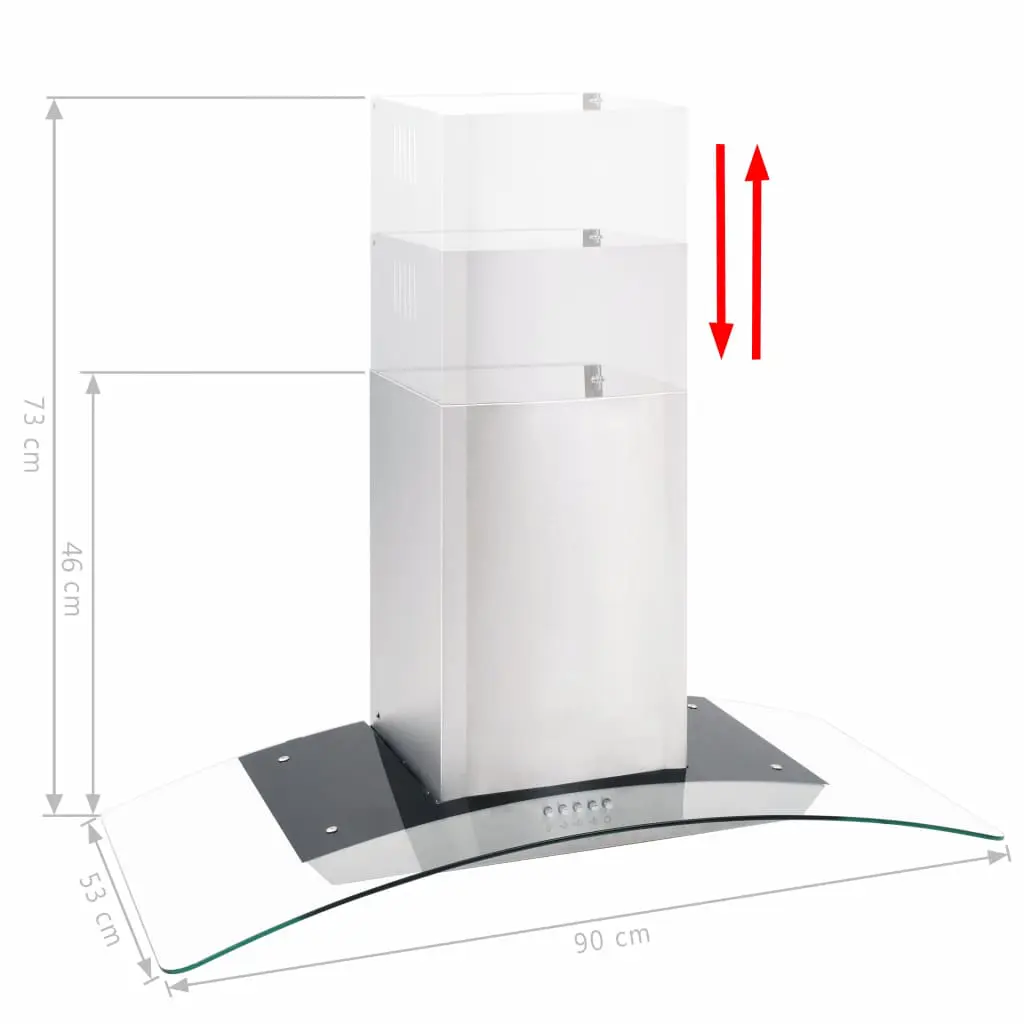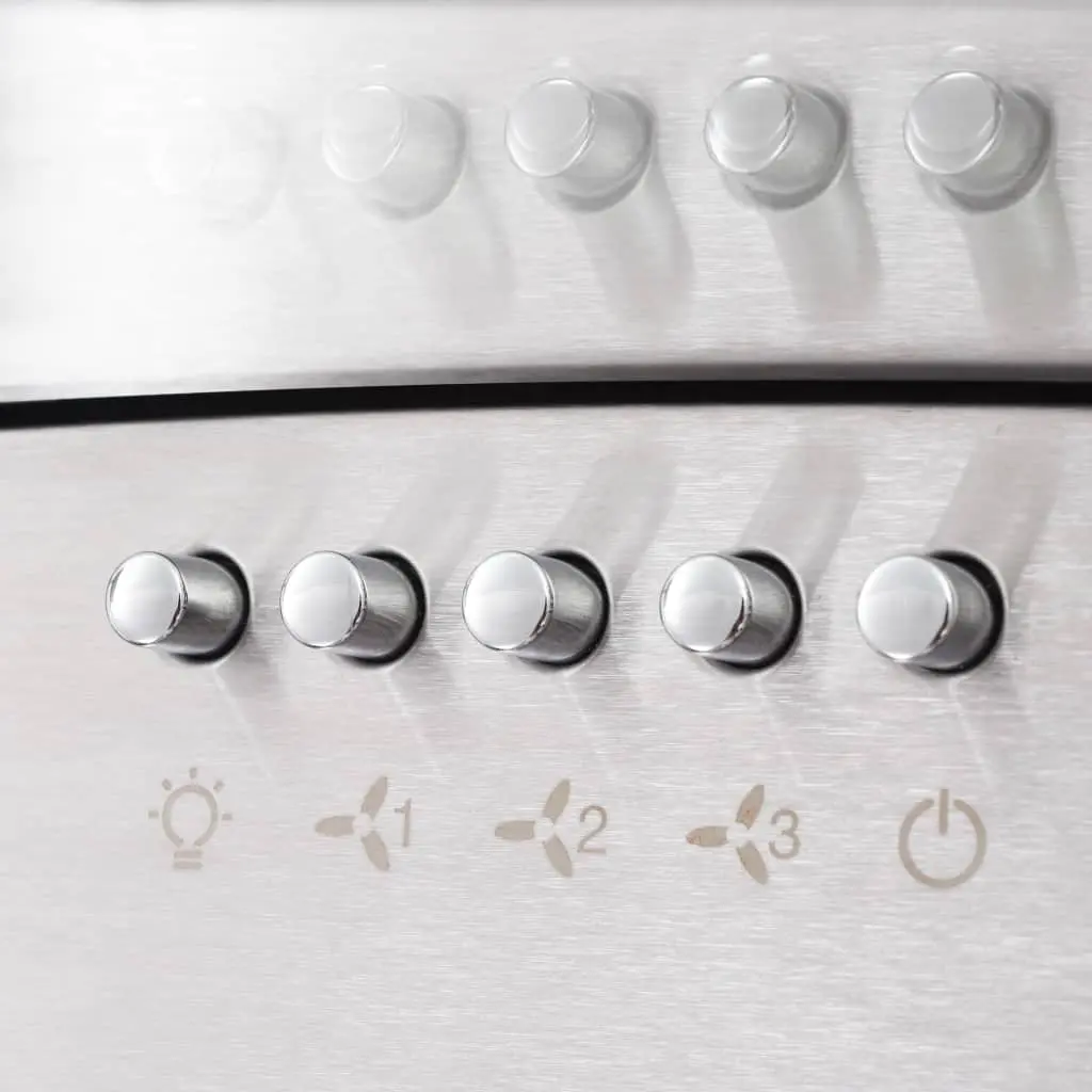 Our low-noise and powerful wall mounted range hood is ideal for effectively extracting smoke, grease, moisture and even heat from your kitchen. Its stainless steel housing is combined with a sleek, curved tempered glass canopy, giving your kitchen a stylish and modern look. This chimney hood is equipped with two 3-layer washable aluminium grease filters to protect the inside of the extractor hood and the exhaust pipe from grease. The built-in LED lights provide excellent illumination, to help with cooking and also to create a nice ambience in your kitchen. The extractor hood has 3 variable speeds to ensure you have a full control over the extraction rate and a charcoal filter that will help purify the air and release the cleaned air back into the kitchen, whilst external extraction transfers cooking odours to outside with the help of the included exhaust pipe. Assembly is easy.