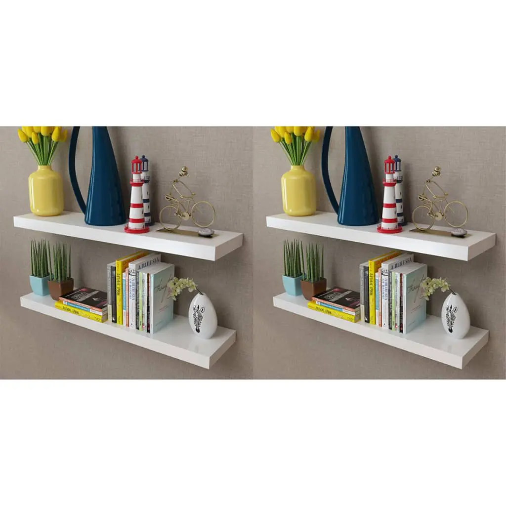 This set consists of 4 wall display shelves that will become the focal point of your home. With an invisible mounting system, these wall shelves are easy to install and serve as the perfect place to store the items such as awards, books, collectables, ornaments, etc. This display shelf will suit any decor and turn an empty wall into a feature! These hanging shelves are made of high-quality MDF with a matte finish. Delivery includes 4 wall shelves, screws and wall plugs.