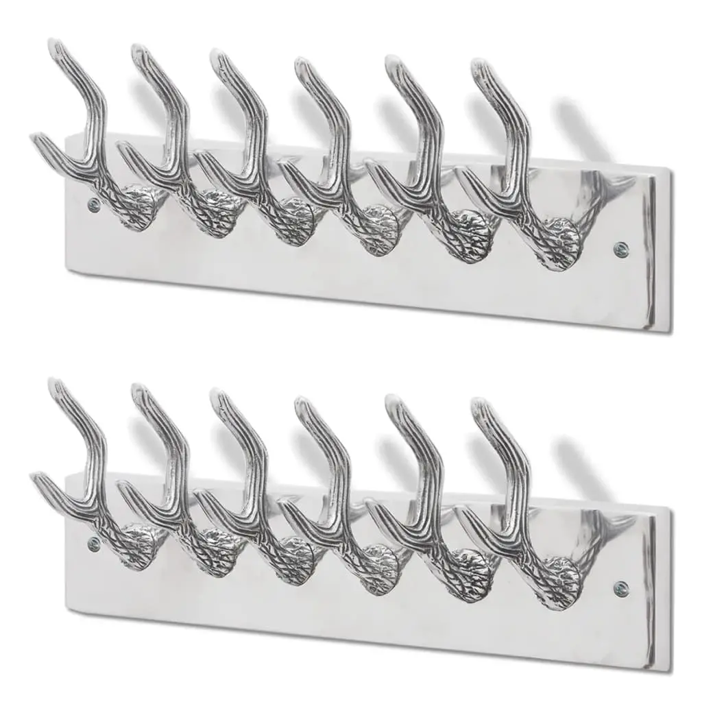 This coat rack, decorated with beautiful antlers, will make a decorative as well as practical addition to your room. With an invisible mounting system, the coat rack serves as an ideal place to hang your coats, hats, bags, scarves etc. Made of high-quality aluminium with polished finish, this coat rack has a sturdy structure and is extremely durable. It has 6 hooks to hang something you love. This coat rack will suit any decor and turn an empty wall or dull wardrobe into a feature! Delivery includes 2 racks.
