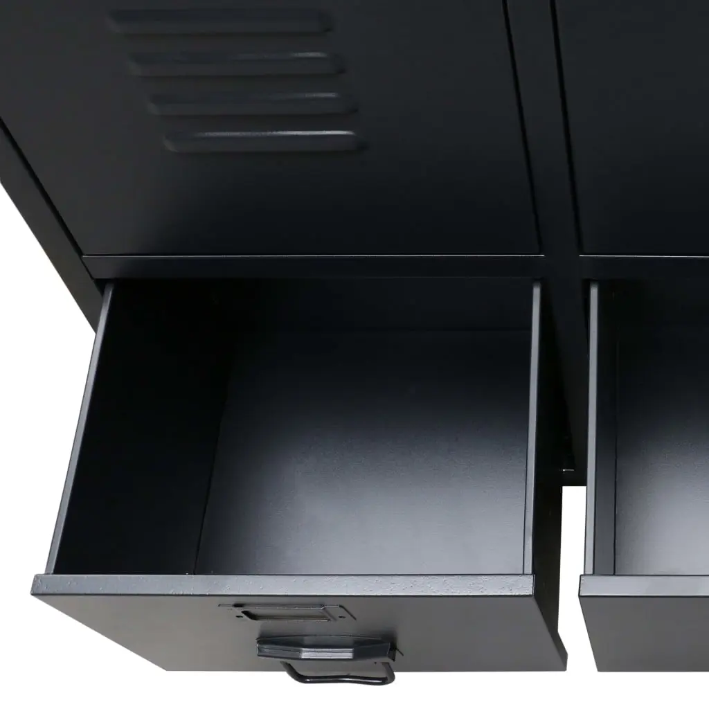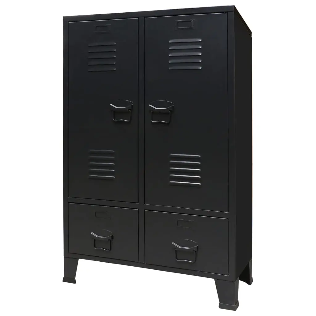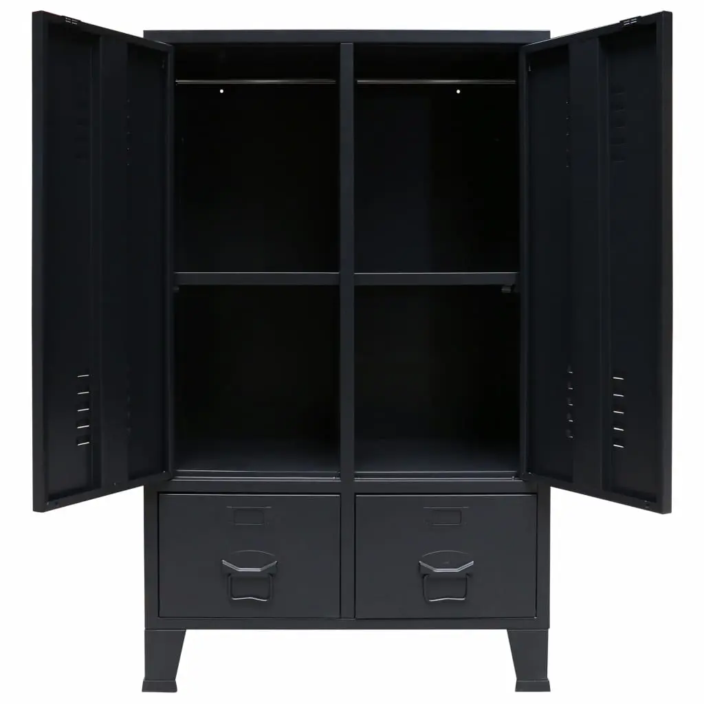 Our practical wardrobe not only presents a perfect storage solution, but also makes a unique decorative addition to your home with its cool, industrial style. The closet has 2 adjustable interior shelves that allow you to neatly sort your clothes into different categories and 2 drawers for storing and organising your socks, underclothes, etc. Each door has a name card holder and ventilation holes to add to its industrial gym locker look. This storage cabinet is made of sheet metal, which makes it durable and easy to clean. Assembly is easy.