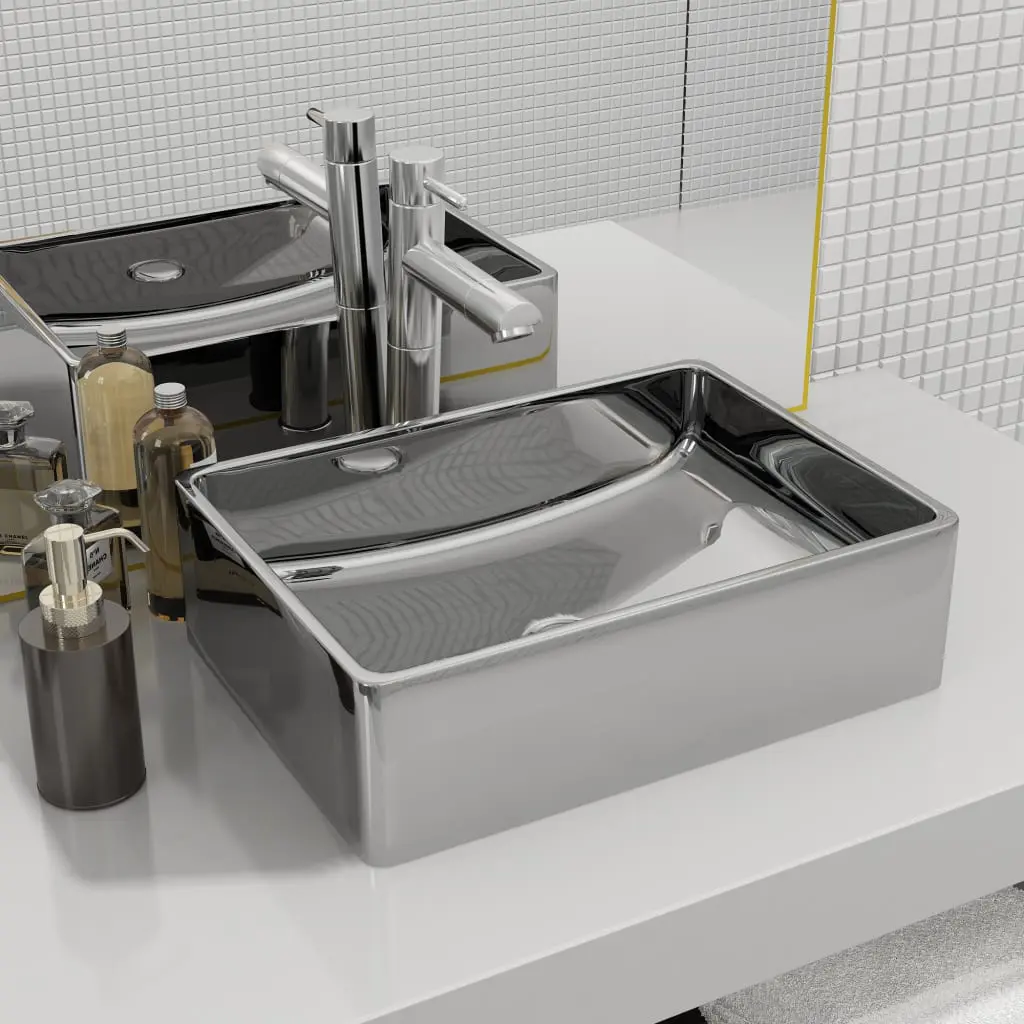 Made of ceramic, this rectangular basin will be a chic and timeless addition to any bathroom, washroom, cloakroom or powder room. The washroom basin can not only serve as vessel for daily use, but also an adornment in your living space. Thanks to its trendsetting and contemporary design, this wash basin will definitely suit any decor. Made of ceramic, the sink is considerably easy to clean. Additionally, its high gloss finish adds a charming touch to this bathroom basin. Please note that the tap and the drain are not included in delivery.