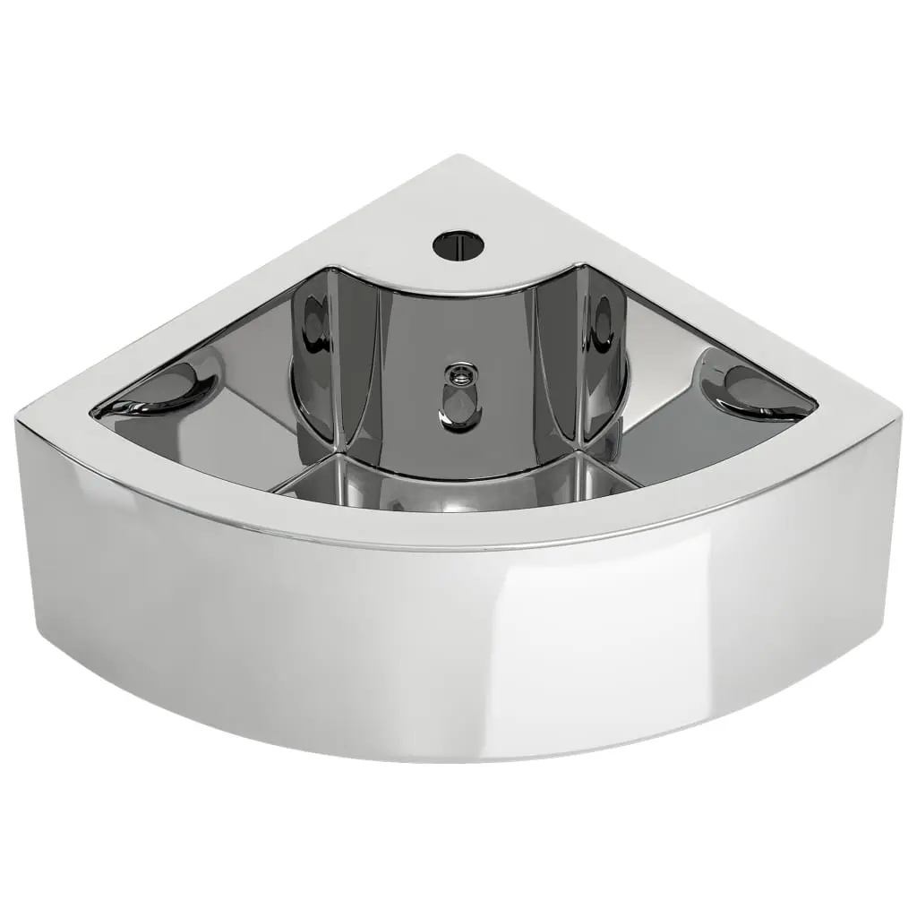 Made of ceramic, this corner basin will be a chic and timeless addition to any bathroom, washroom, cloakroom or powder room. The washroom basin can not only serve as vessel for daily use, but also an adornment in your living space. Thanks to its trendsetting and contemporary design with a silver shiny colour, this wash basin will definitely suit any decor. Made of ceramic, the sink is considerably easy to clean. Additionally, its high gloss finish adds a charming touch to this bathroom basin. Equipped with an overflow, this basin will effectively flow water out when it gets too full. The basin has a faucet hole for installing a tap. Please note that the tap and the drain are not included in delivery.