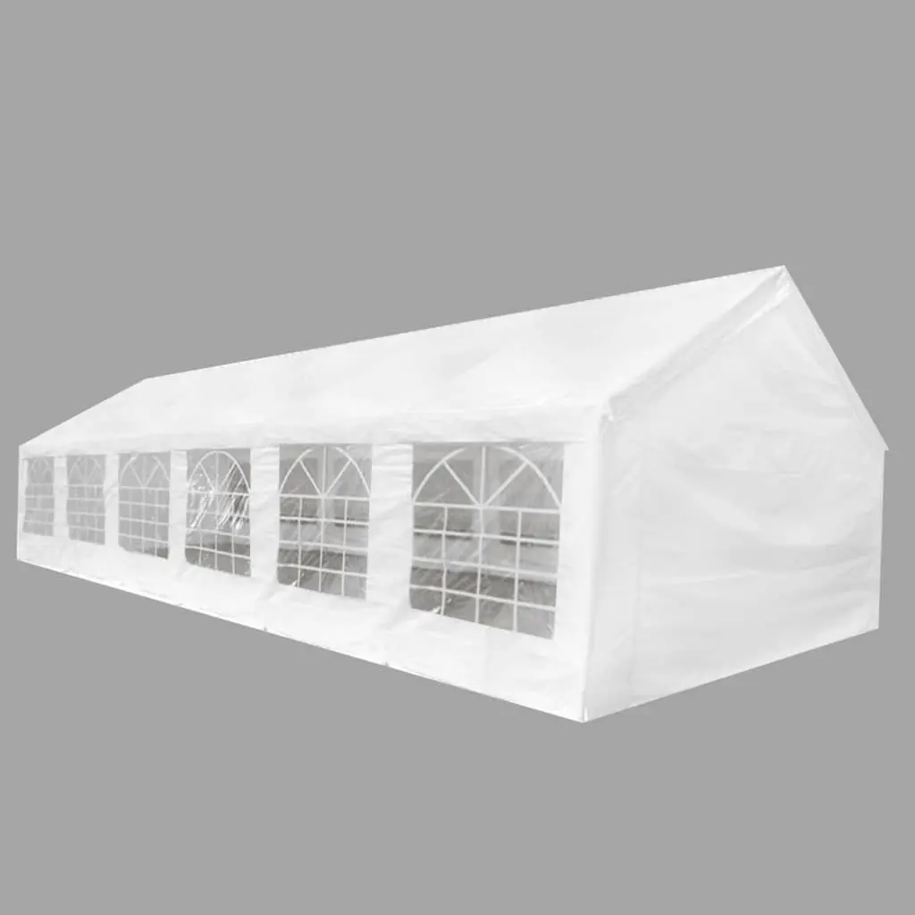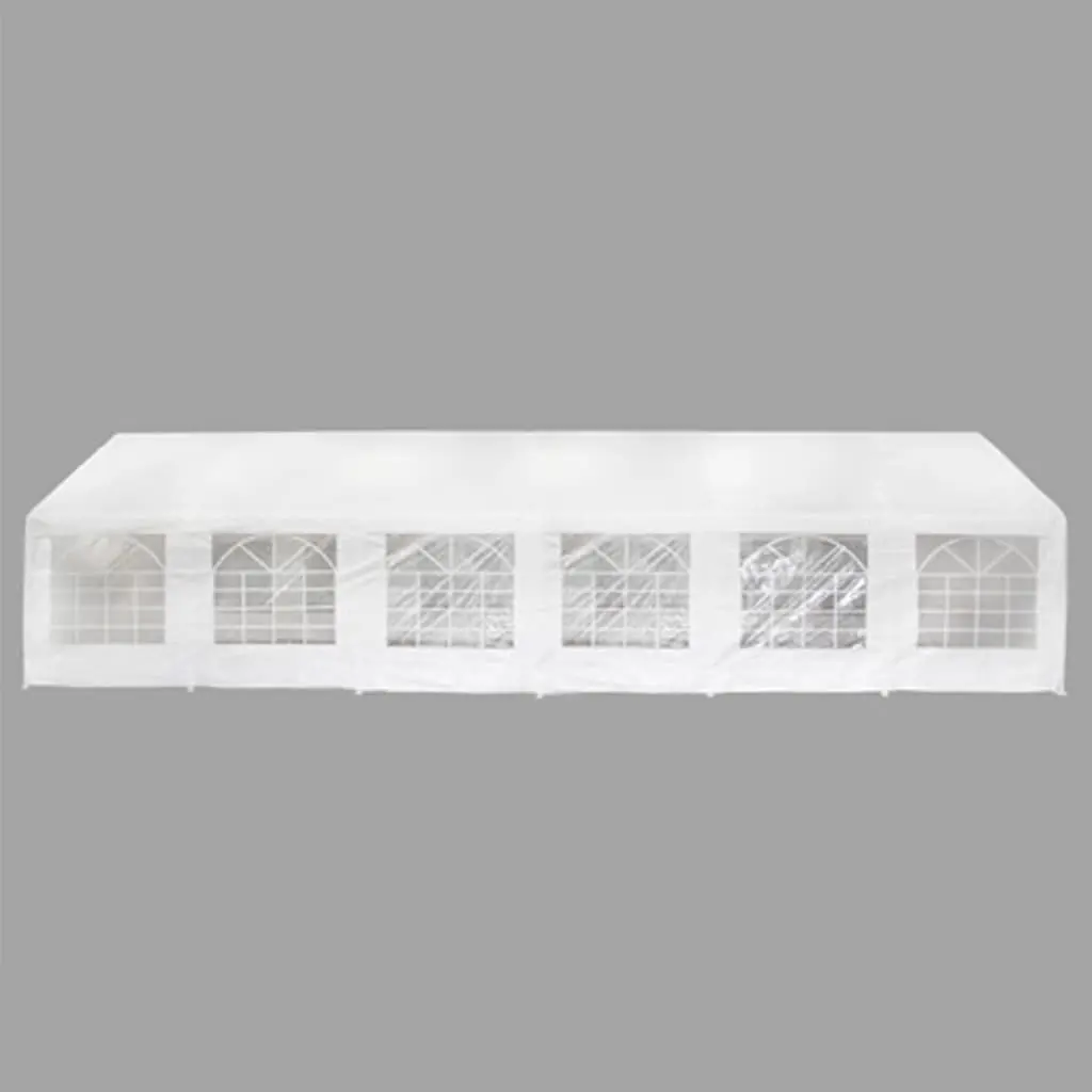 This party tent will be ideal for any outdoor event, such as a show, wedding, party, BBQ, camping trip, festival and so on. You can also install it in your backyard as a large sunshade for your family and guests. It is hard-wearing enough to be suitable for outdoor use year ’round. Made of 100% PE material, the party tent’s cover and side panels are UV protective and waterproof. There are 2 window panels with 6 decorative windows each, and 2 door panels, each with a zippered, roll-up doorway for easy entrance. This frame is manufactured from rust-resistant steel and thus highly durable. Assembly is really easy. Delivery includes a canopy top and four side panels, a steel frame and stakes and ties! NOTE: This product should NEVER be used under bad weather, such as strong wind, heavy rain, snow, storm, etc.