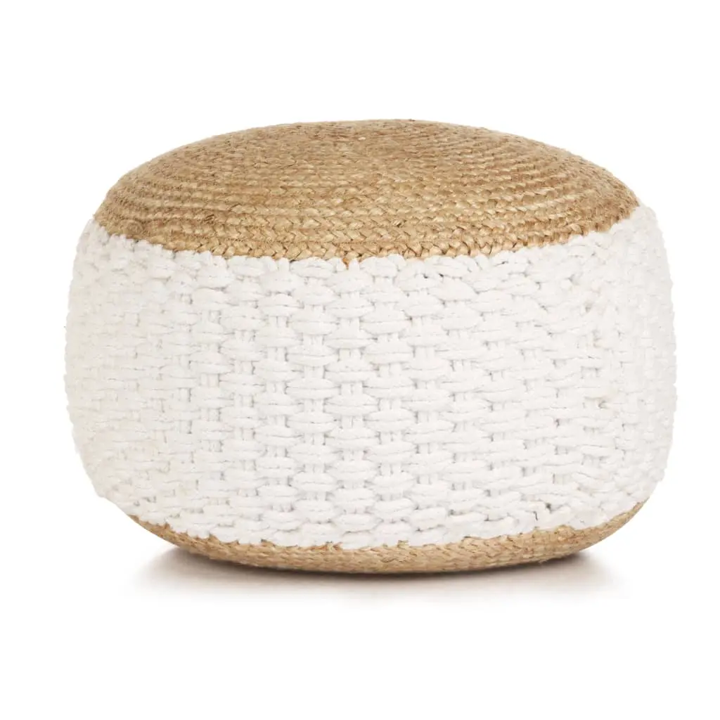 Sit down on the pouffe or put your feet up on it and relax! Our modern and trendy woven/knitted pouffe will make a practical as well as decorative addition to your home decor. The footstool is made of jute and cotton and filled with EPS foam balls to make it highly comfortable. Place the pouffe in front of a sofa or an armchair, and it will contribute to a cosy ambience in any room!