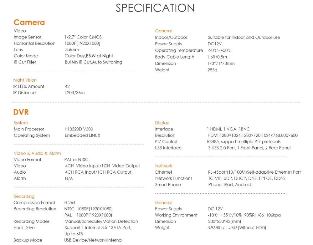 Get a sharp and crisp image day or night with the camera’s automatic IR-cut filter. Up to 120ft night vision. Aluminum weatherproof housing, cameras can be used indoors and outdoors